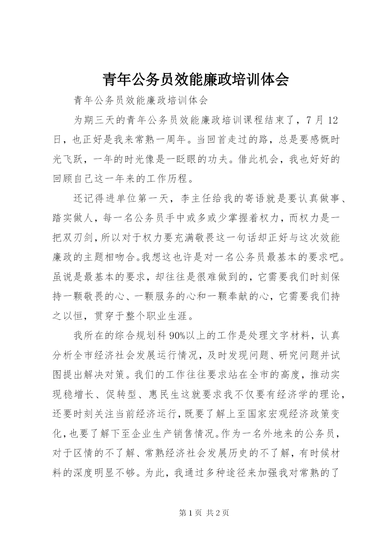 青年公务员效能廉政培训体会 (2).docx