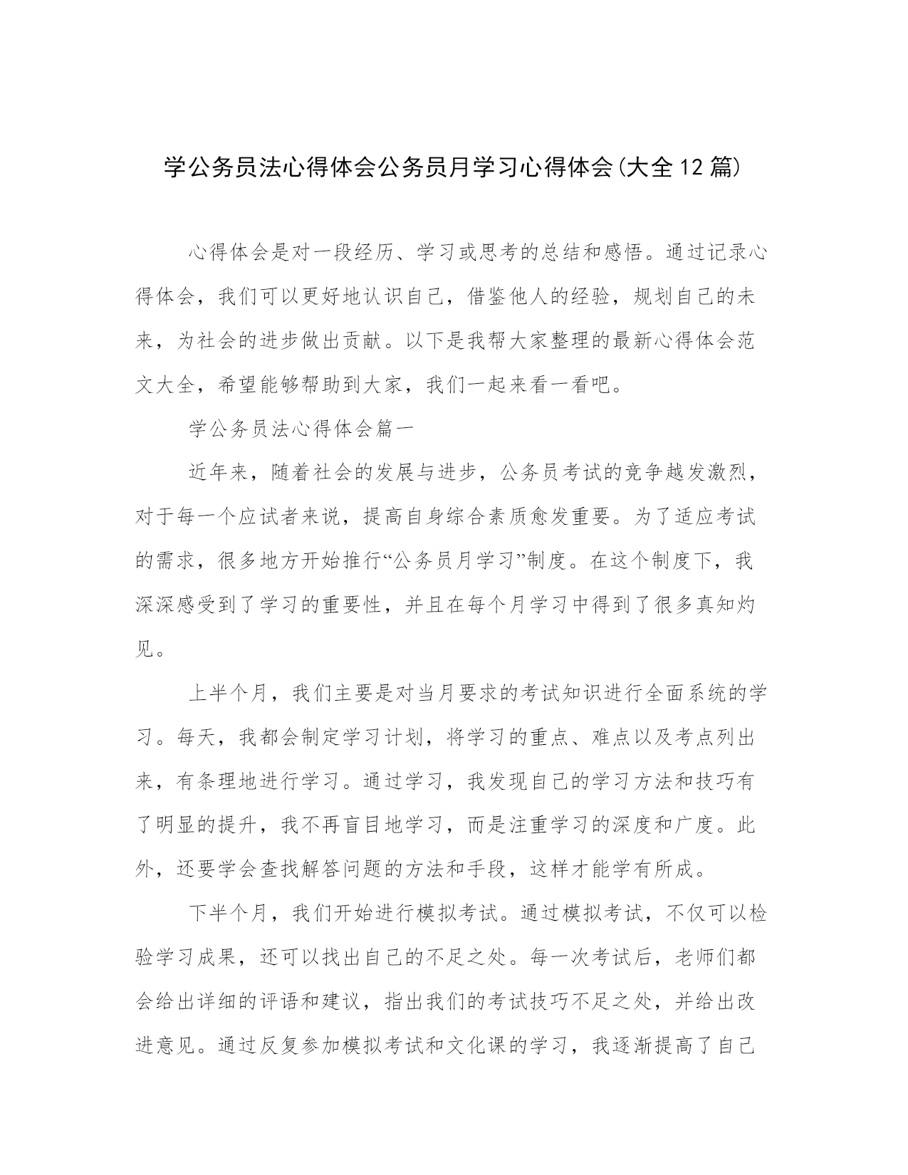 学公务员法心得体会公务员月学习心得体会(大全12篇).docx