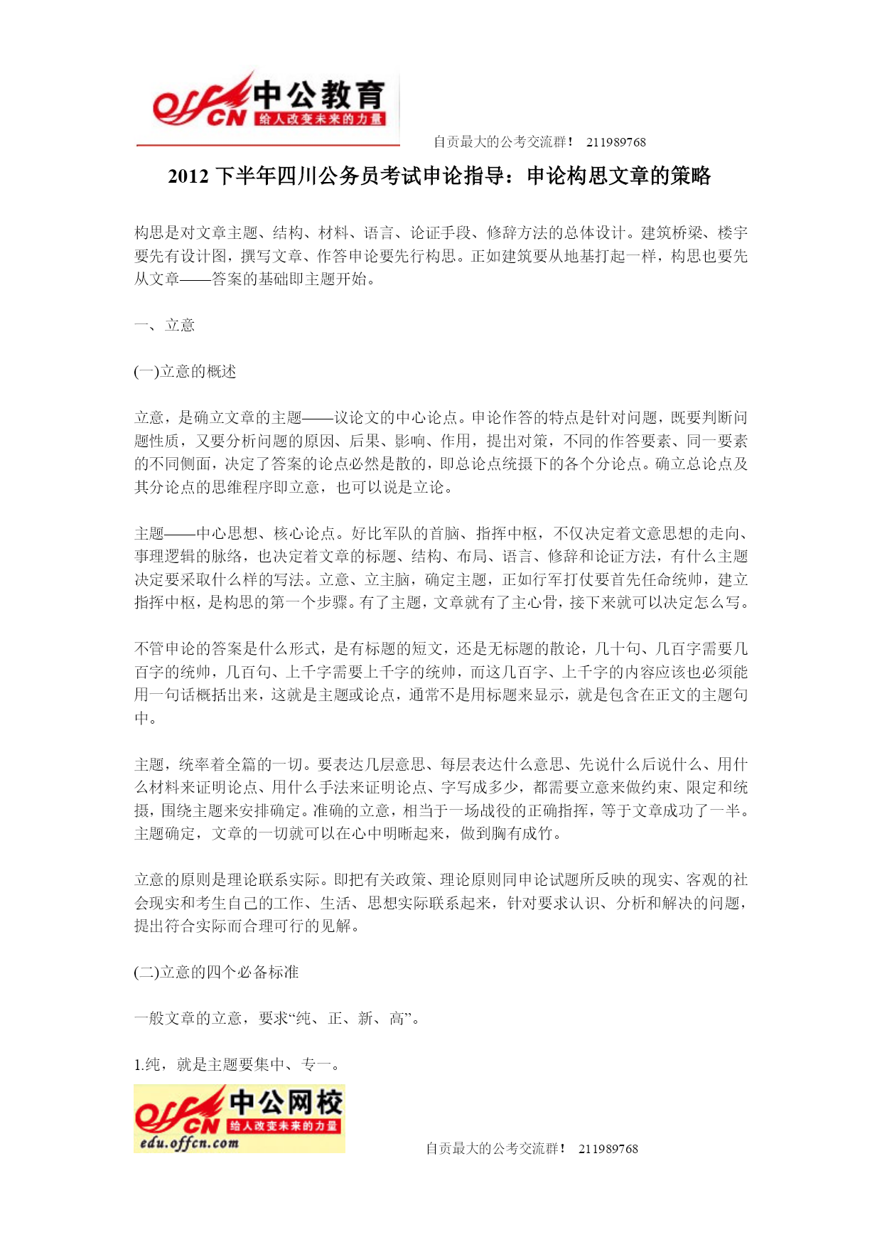 2012下半年四川公务员考试申论指导:申论构思文章的策略.doc