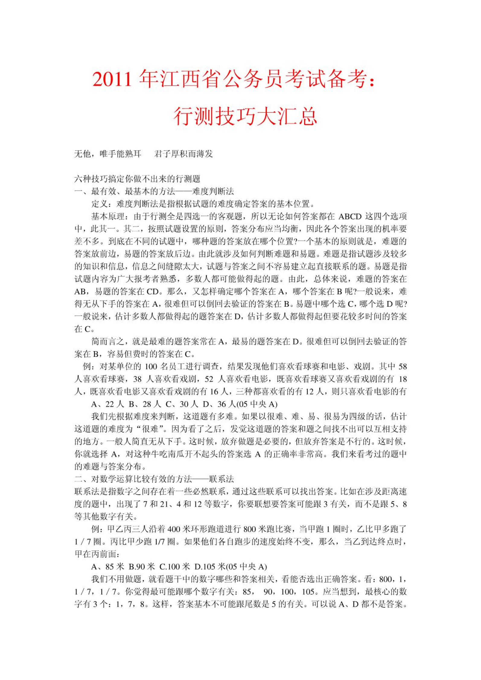 2011年江西省公务员考试备考:行测技巧大汇总(完整版).pdf