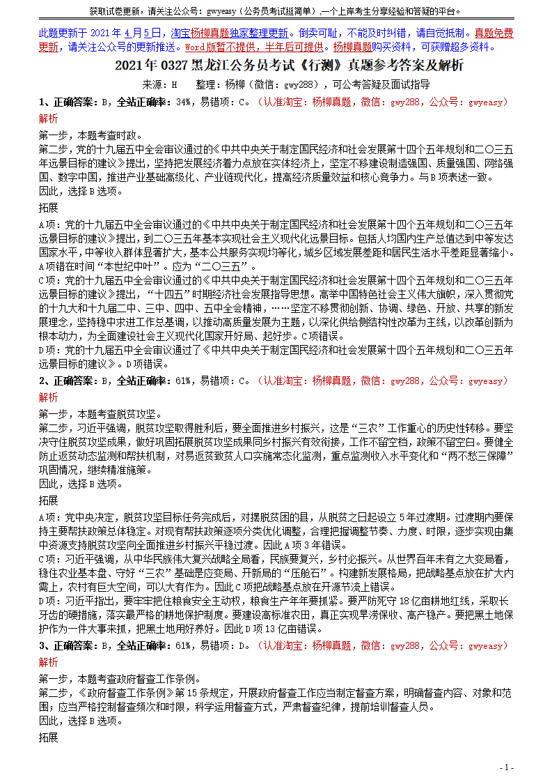 2021年0327黑龙江公务员考试《行测》真题参考答案及解析.pdf