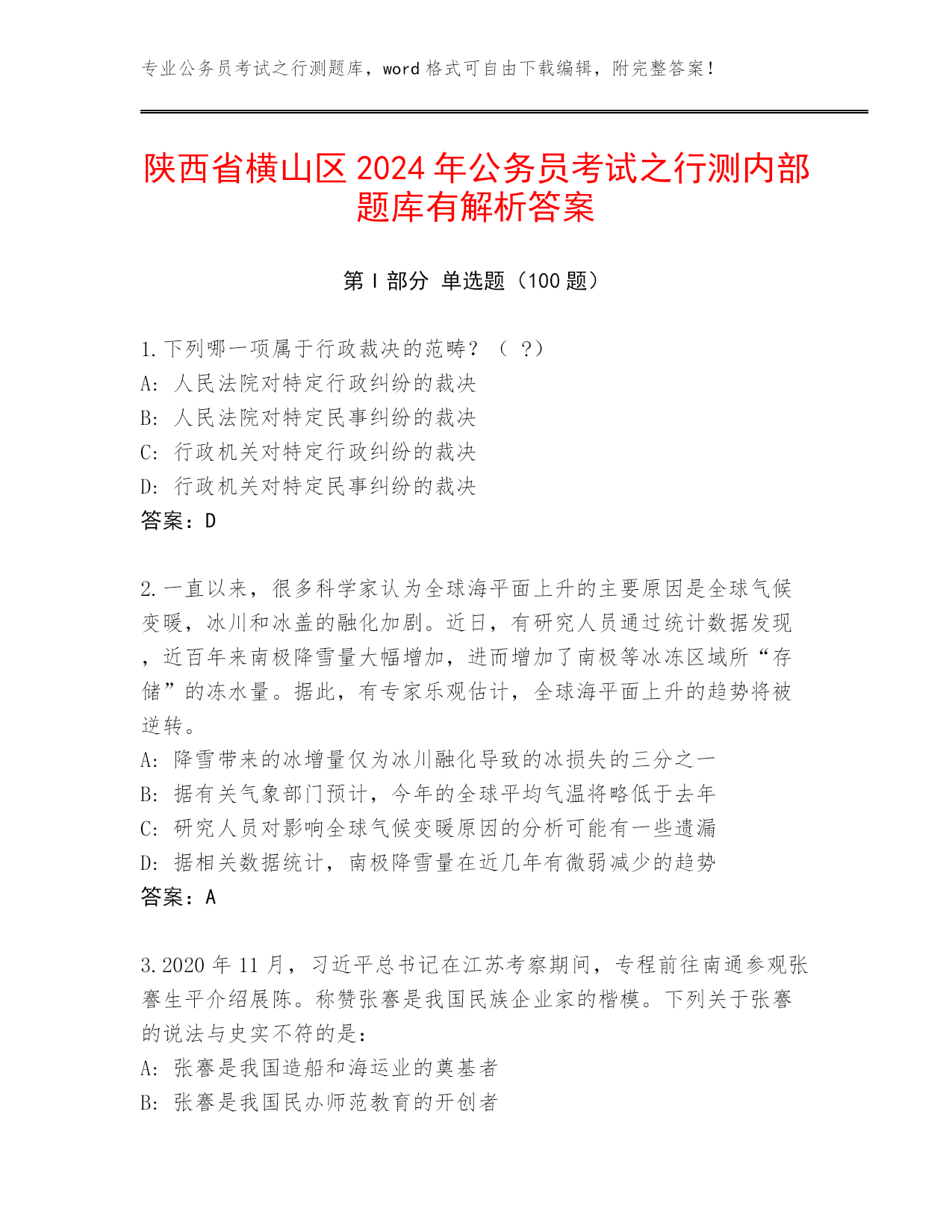 陕西省横山区2024年公务员考试之行测内部题库有解析答案.docx