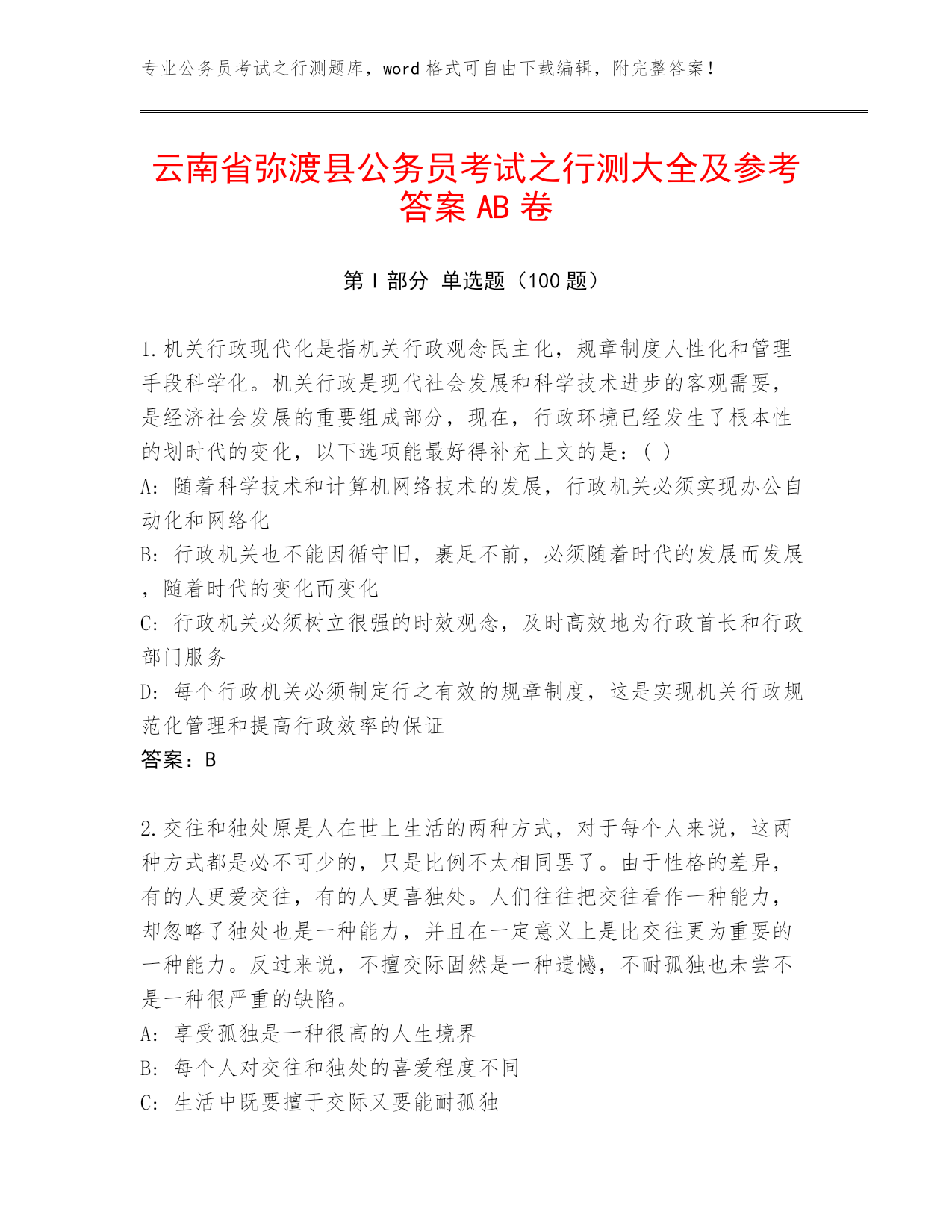 云南省弥渡县公务员考试之行测大全及参考答案AB卷.docx