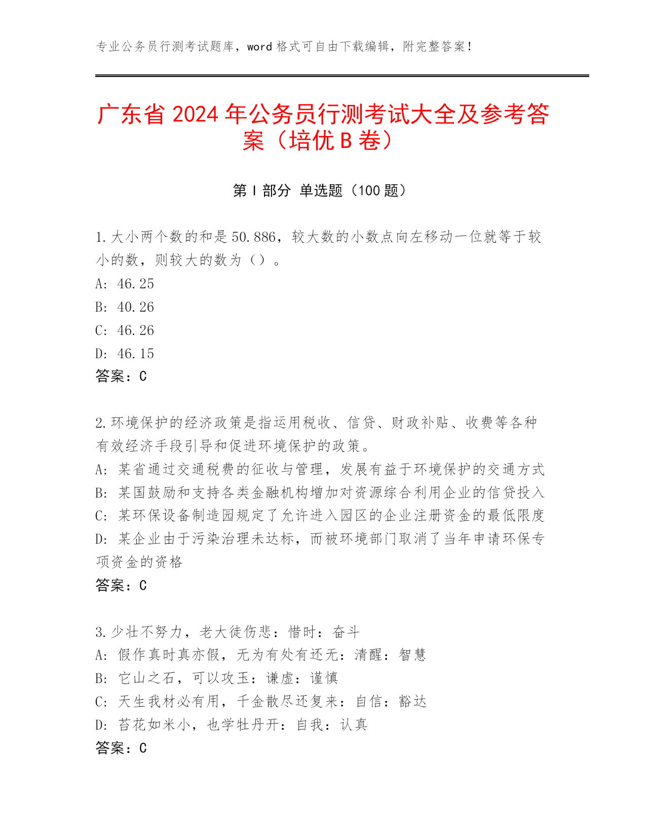 广东省2024年公务员行测考试大全及参考答案(培优B卷).docx