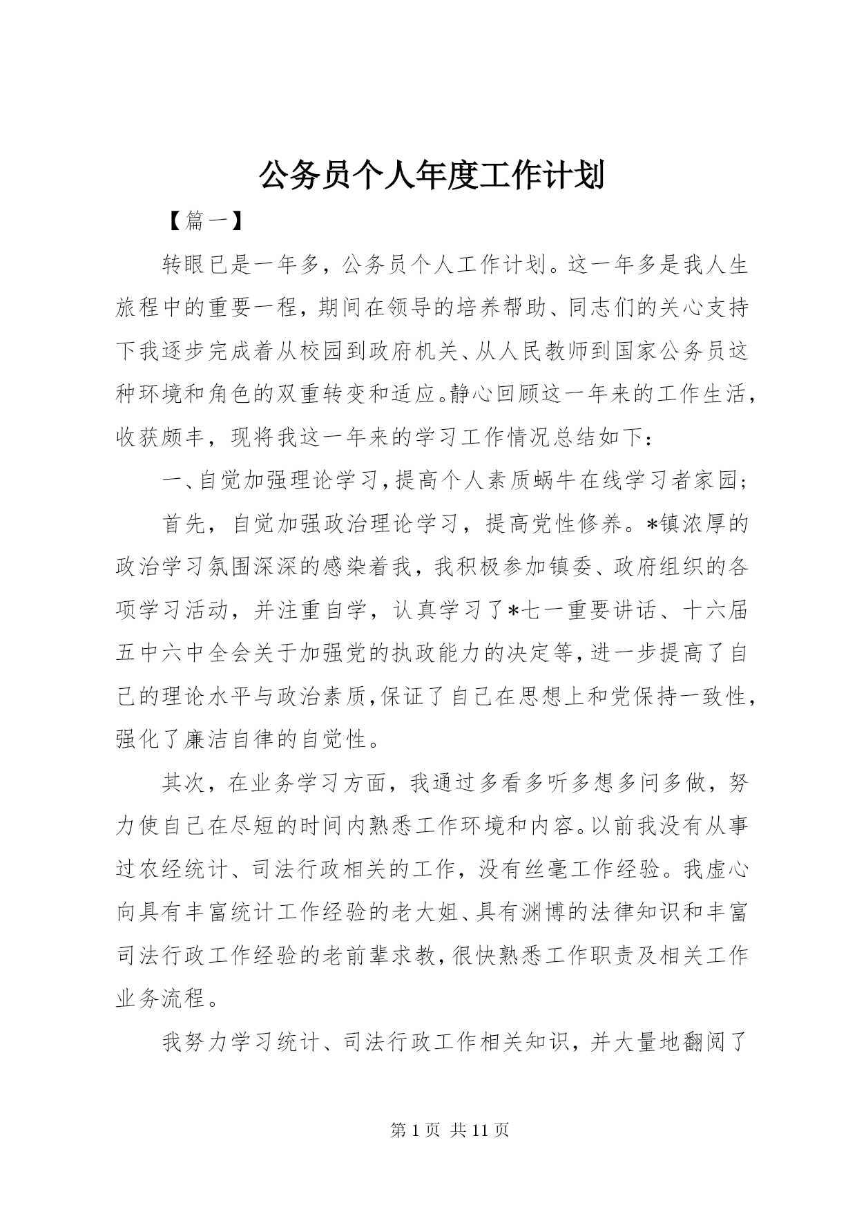 第PAGE\*Arabic\*MERGEFORMAT11页共NUMPAGES\*MERGEFORMAT11页公务员个人年度工作计划【篇一】转眼已是一年多,公务员个人工作计划。这一年多是我人生旅程中的重要一程,期间在领导的培养帮助、同志们的关心支持下我逐步完成着从校园到政府机关、从人民教师到国家公务员这种环境和角色的双重转变和适应。静心回顾这一年来的工作生活,收获颇丰,现将我这一年来的学习工作情况总结如下:一、自觉加强理论学习,提高个人素质蜗牛在线学习者家园;首先,自觉加强政治理论学习,提高党性