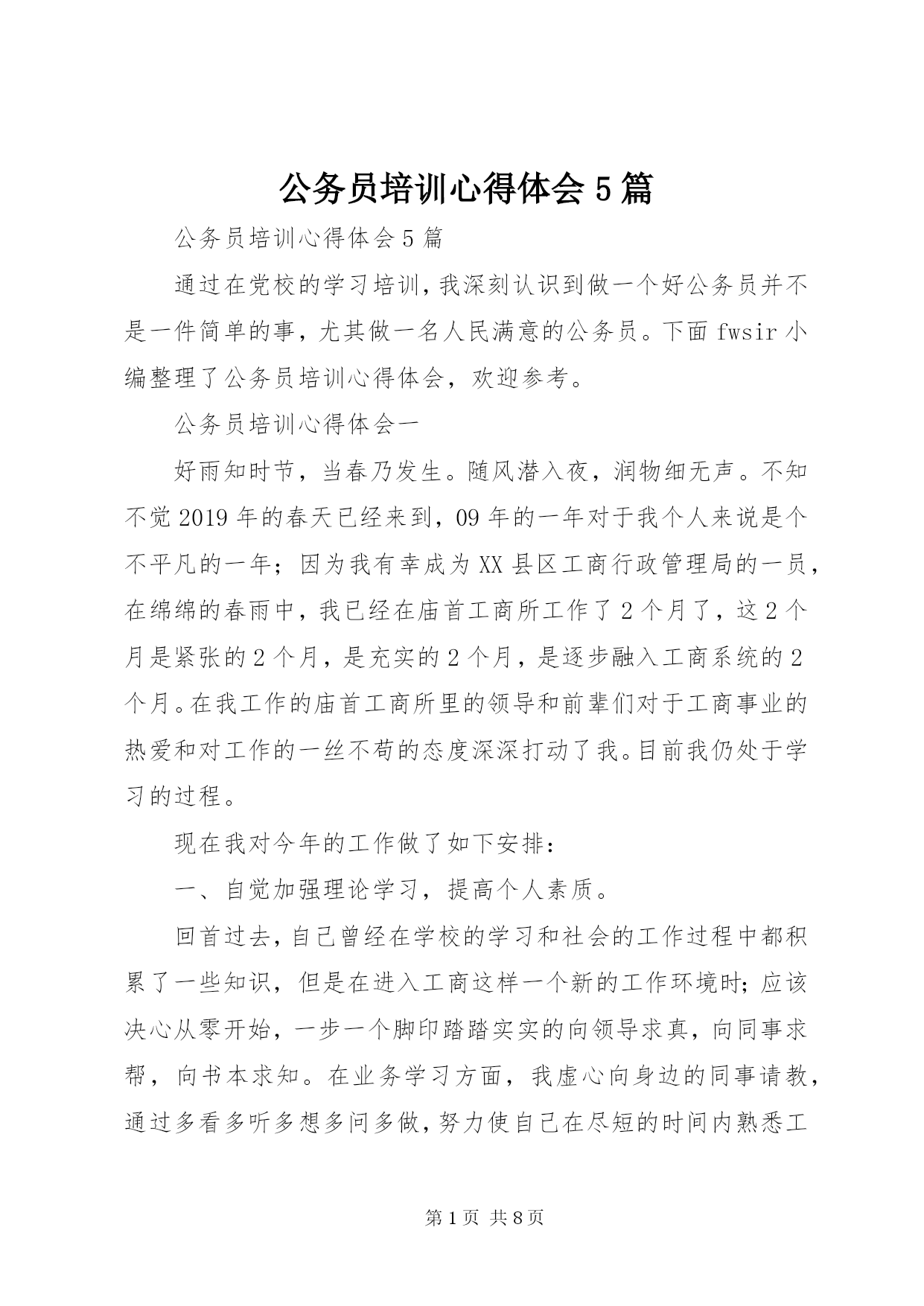 第PAGE\*Arabic\*MERGEFORMAT8页共NUMPAGES\*MERGEFORMAT8页公务员培训心得体会5篇公务员培训心得体会5篇通过在党校的学习培训,我深刻认识到做一个好公务员并不是一件简单的事,尤其做一名人民满意的公务员。下面fwsir小编整理了公务员培训心得体会,欢迎参考。公务员培训心得体会一好雨知时节,当春乃发生。随风潜入夜,润物细无声。不知不觉2019年的春天已经来到,09年的一年对于我个人来说是个不平凡的一年;因为我有幸成为XX县区工商行政管理局的一员,在绵绵的春