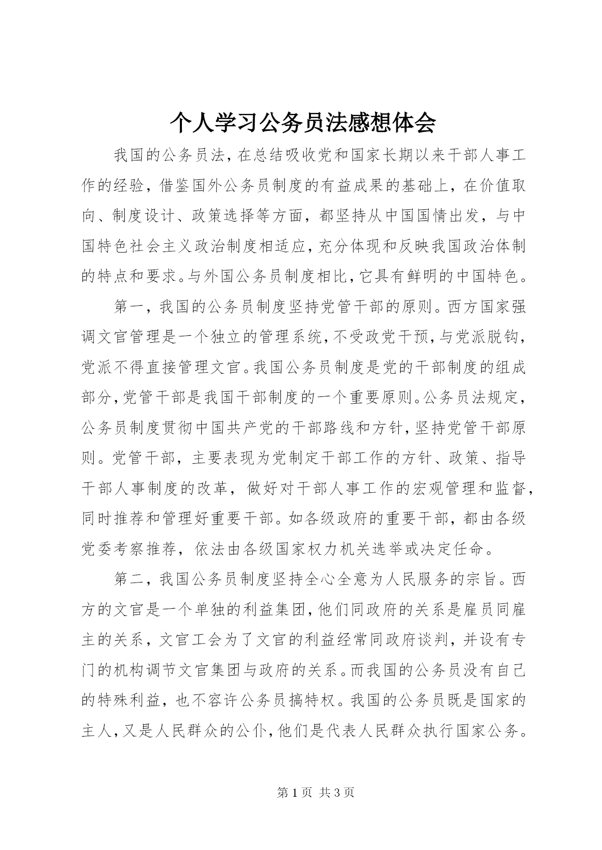 第PAGE\*Arabic\*MERGEFORMAT3页共NUMPAGES\*MERGEFORMAT3页个人学习公务员法感想体会我国的公务员法,在总结吸收党和国家长期以来干部人事工作的经验,借鉴国外公务员制度的有益成果的基础上,在价值取向、制度设计、政策选择等方面,都坚持从中国国情出发,与中国特色社会主义政治制度相适应,充分体现和反映我国政治体制的特点和要求。与外国公务员制度相比,它具有鲜明的中国特色。第一,我国的公务员制度坚持党管干部的原则。西方国家强调文官管理是一个独立的管理系统,不受政党
