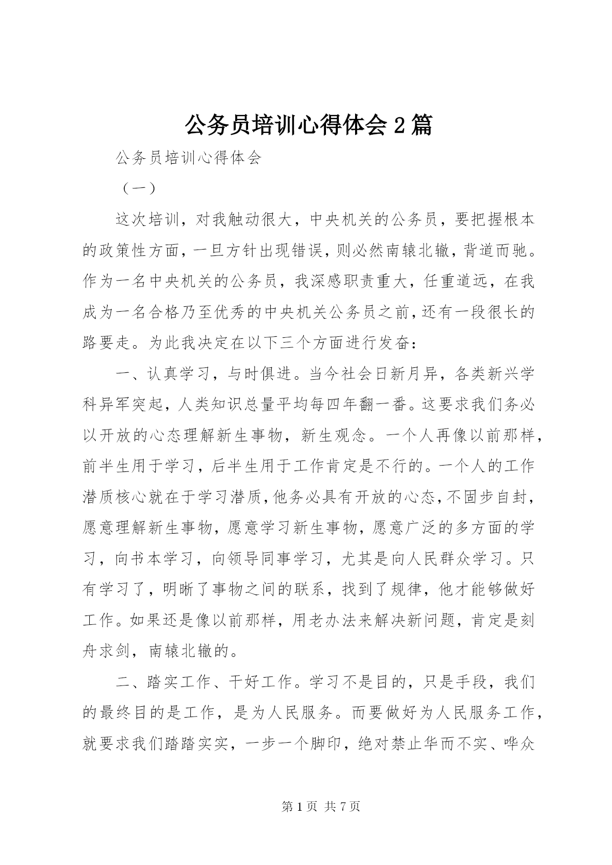 第PAGE\*Arabic\*MERGEFORMAT7页共NUMPAGES\*MERGEFORMAT7页公务员培训心得体会2篇公务员培训心得体会(一)这次培训,对我触动很大,中央机关的公务员,要把握根本的政策性方面,一旦方针出现错误,则必然南辕北辙,背道而驰。作为一名中央机关的公务员,我深感职责重大,任重道远,在我成为一名合格乃至优秀的中央机关公务员之前,还有一段很长的路要走。为此我决定在以下三个方面进行发奋:一、认真学习,与时俱进。当今社会日新月异,各类新兴学科异军突起,人类知识总量平均每四