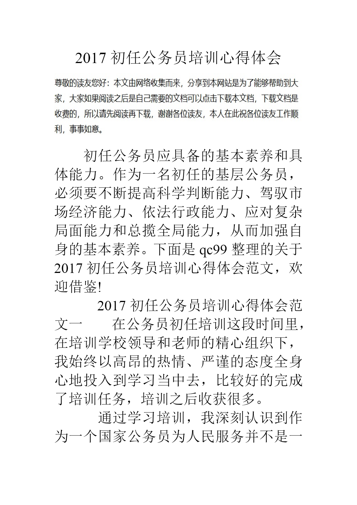 2017初任公务员培训心得体会初任公务员应具备的基本素养和具体能力。作为一名初任的基层公务员,必须要不断提高科学判断能力、驾驭市场经济能力、依法行政能力、应对复杂局面能力和总揽全局能力,从而加强自身的基本素养。下面是qc99整理的关于2017初任公务员培训心得体会范文,欢迎借鉴!2017初任公务员培训心得体会范文一在公务员初任培训这段时间里,在培训学校领导和老师的精心组织下,我始终以高昂的热情、严谨的态度全身心地投入到学习当中去,比较好的完成了培训任务,培训之后收获很多。通过学习培训,我深刻认识到作为一个