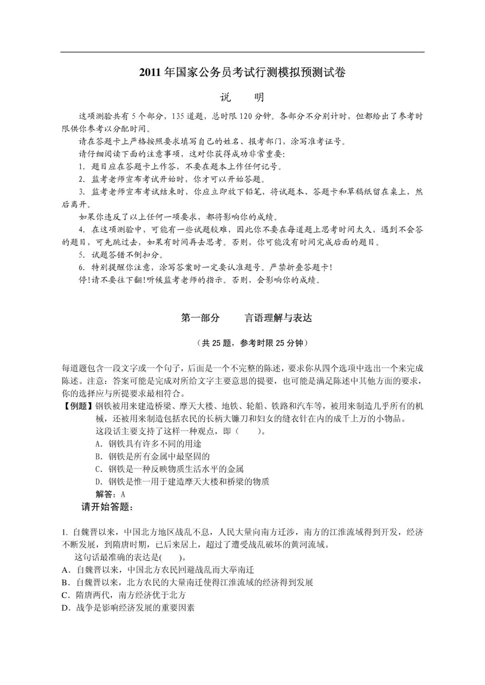2011年国家公务员录用考试行测模拟预测试卷及解析3.pdf