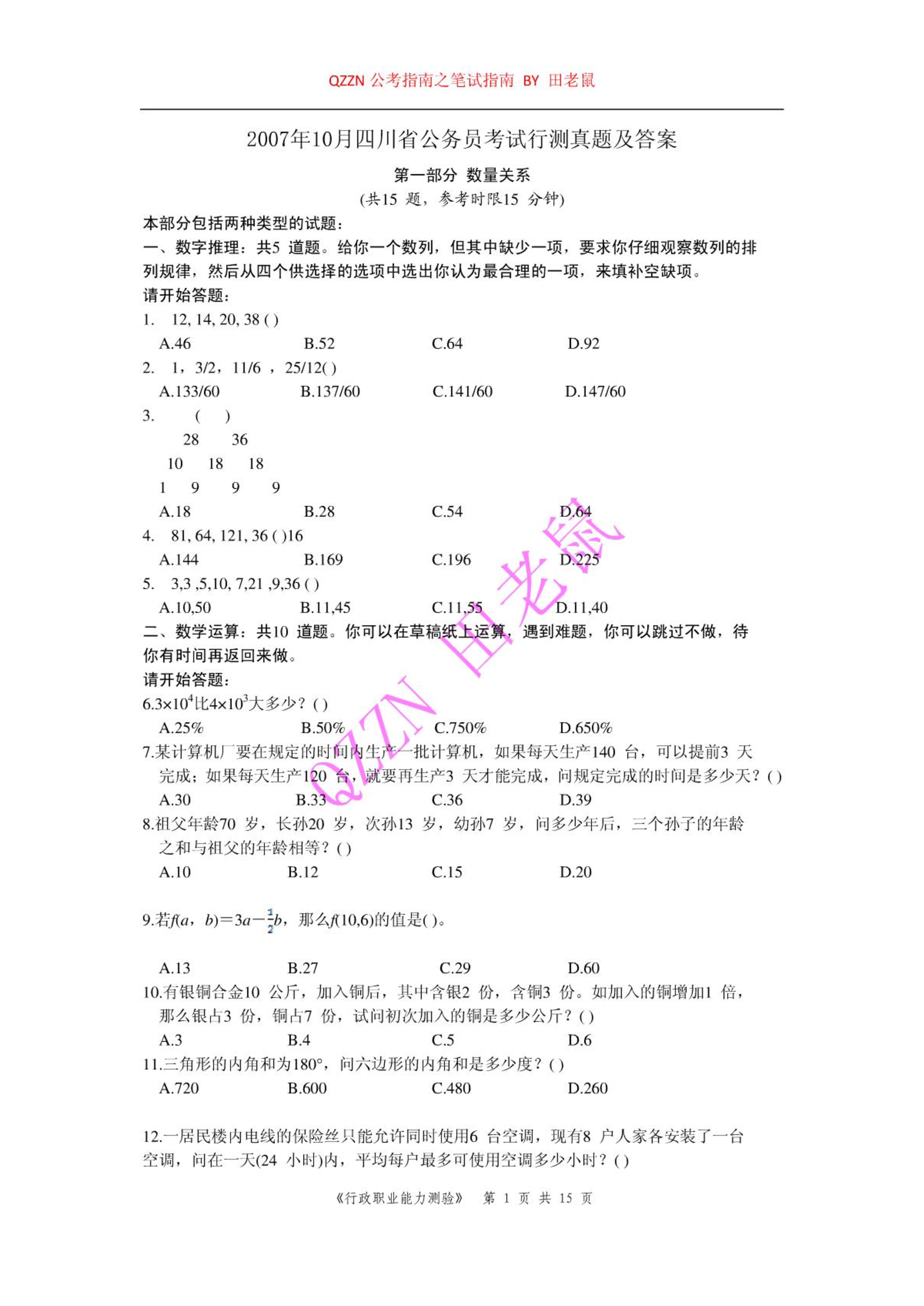 2007下半年四川省公务员考试行测真题及解析.pdf