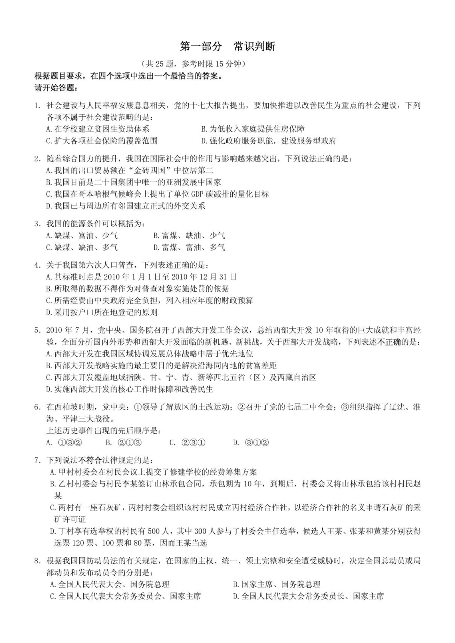 2010年江苏省公务员考试公共基础知识C类真题及答案解析.pdf