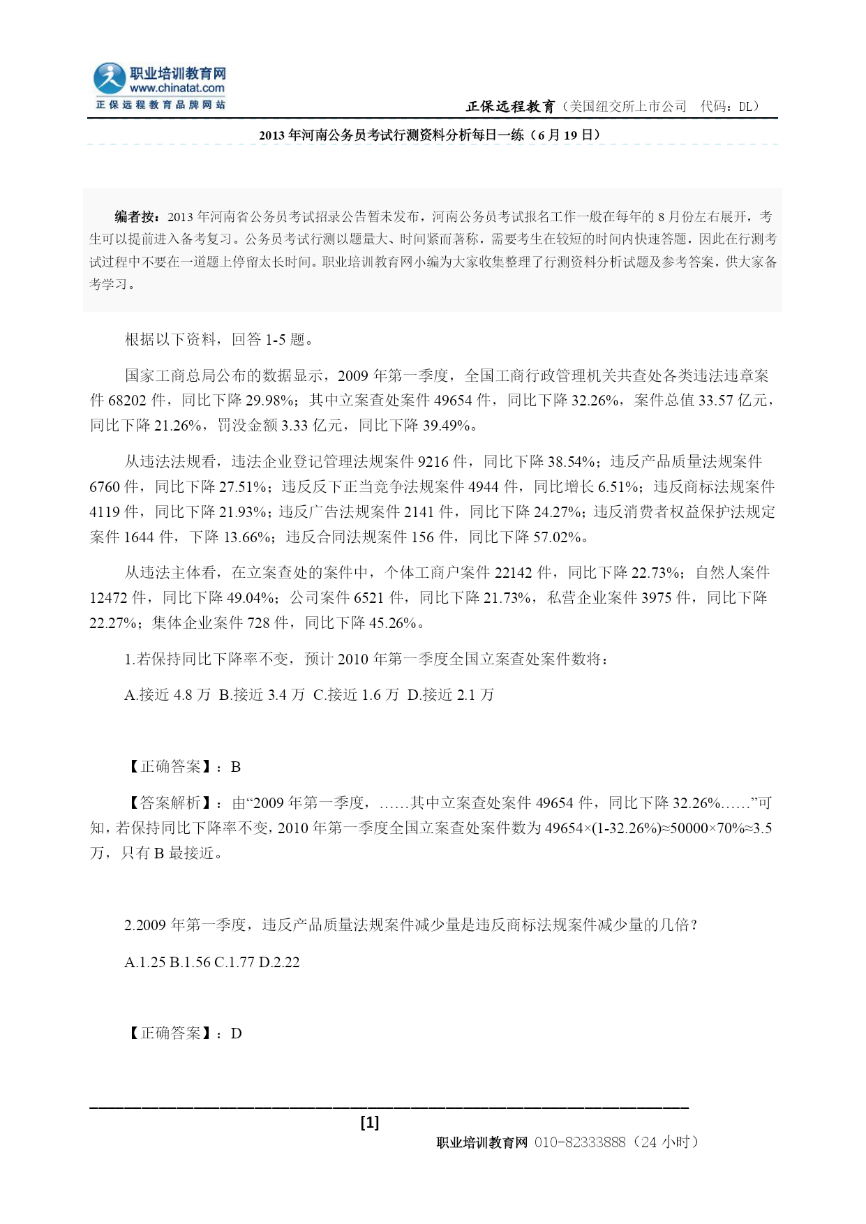 HYPERLINK"http://www.cdeledu.com"正保远程教育(美国纽交所上市公司代码:DL)_____________________________________________________________________[PAGE\*MERGEFORMAT3]职业培训教育网010-82333888(24小时)2013年河南公务员考试行测资料分析每日一练(6月19日)编者按:2013年河南省HYPERLINK"http://www.chinatat.com/gwy/