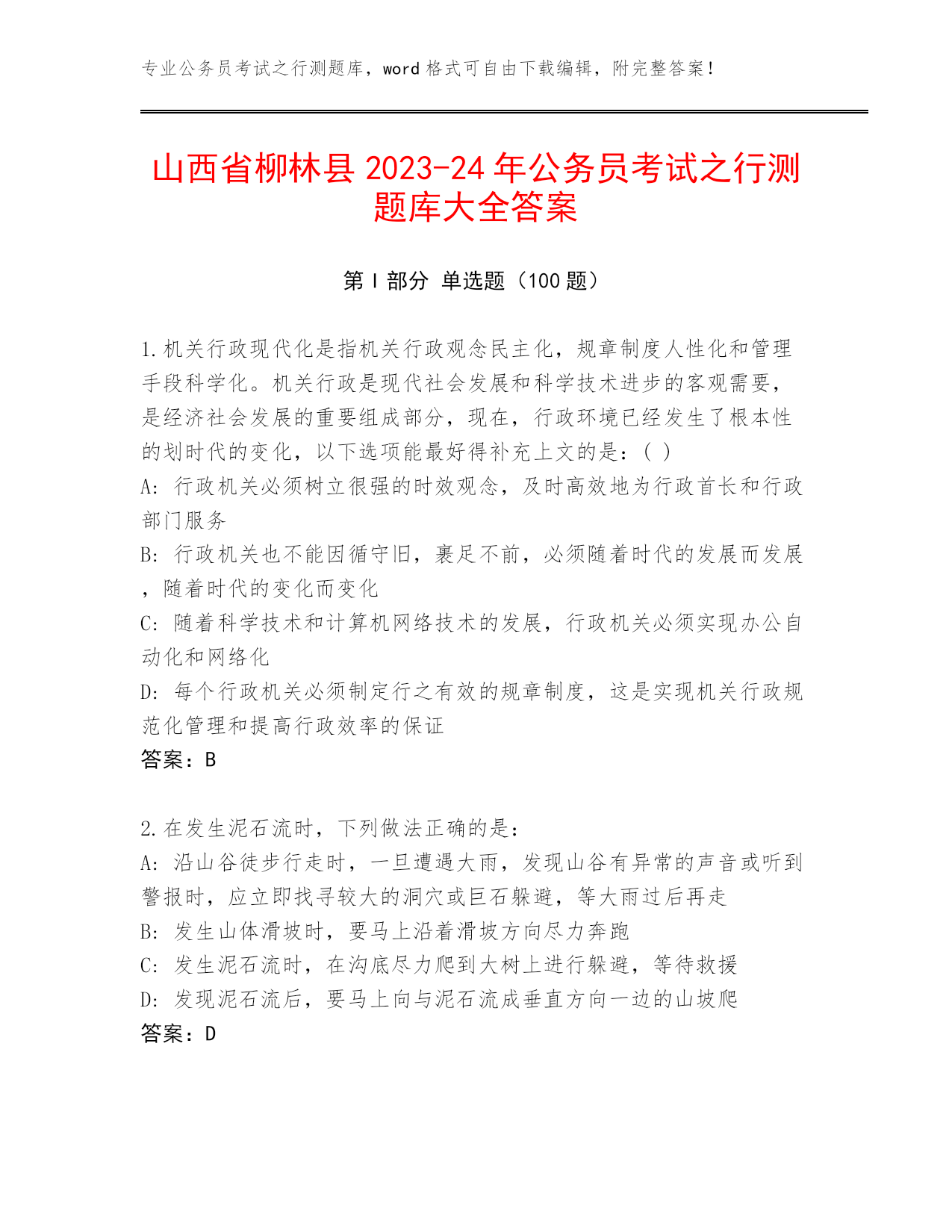 山西省柳林县2023-24年公务员考试之行测题库大全答案.docx