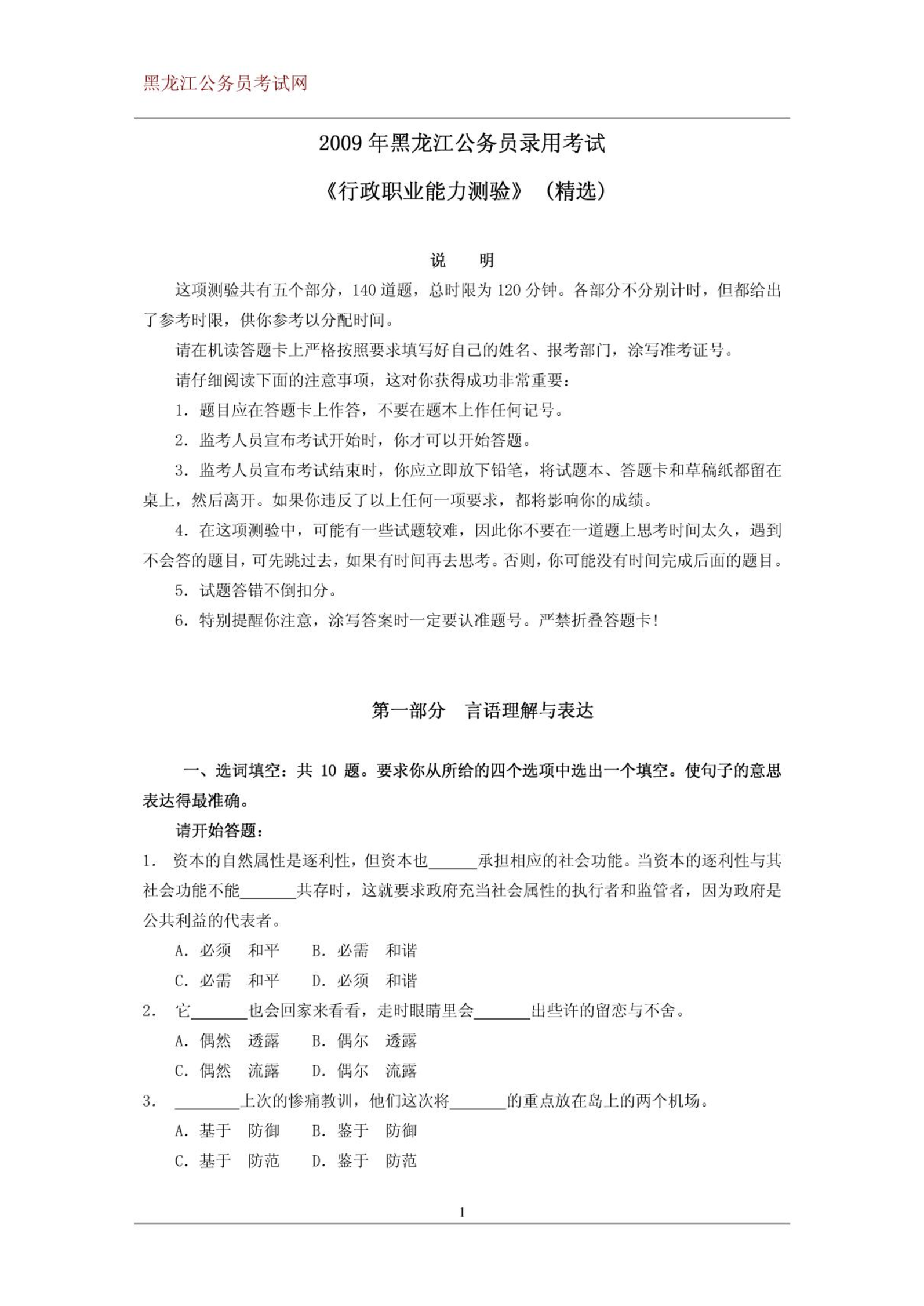 2010年黑龙江省公务员行测题实验考试答案及解析(保真题).pdf