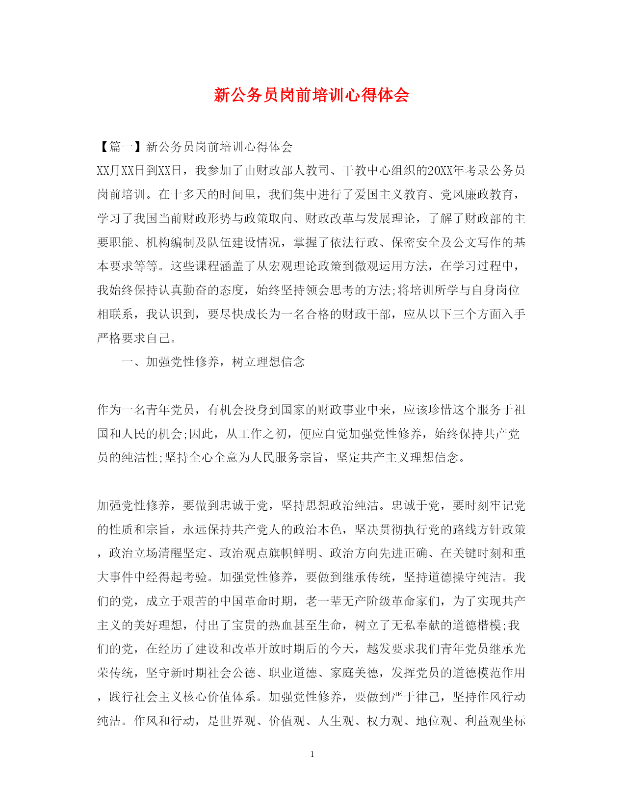此资料由网络收集而来,如有侵权请告知上传者立即删除。资料共分享,我们负责传递知识。PAGEPAGE8新公务员岗前培训心得体会【篇一】新公务员岗前培训心得体会XX月XX日到XX日,我参加了由财政部人教司、干教中心组织的20XX年考录公务员岗前培训。在十多天的时间里,我们集中进行了爱国主义教育、党风廉政教育,学习了我国当前财政形势与政策取向、财政改革与发展理论,了解了财政部的主要职能、机构编制及队伍建设情况,掌握了依法行政、保密安全及公文写作的基本要求等等。这些课程涵盖了从宏观理论政策到微观运用方