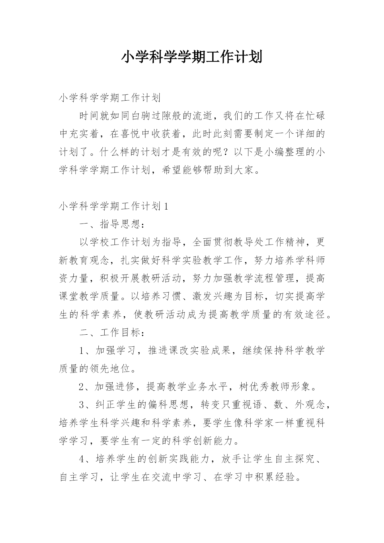 小学科学学期工作计划小学科学学期工作计划时间就如同白驹过隙般的流逝,我们的工作又将在忙碌中充实着,在喜悦中收获着,此时此刻需要制定一个详细的计划了。什么样的计划才是有效的呢?以下是小编整理的小学科学学期工作计划,希望能够帮助到大家。小学科学学期工作计划1一、指导思想:以学校工作计划为指导,全面贯彻教导处工作精神,更新教育观念,扎实做好科学实验教学工作,努力培养学科师资力量,积极开展教研活动,努力加强教学流程管理,提高课堂教学质量。以培养习惯、激发兴趣为目标,切实提高学生的科学素养,使教研活动成为提高教学质