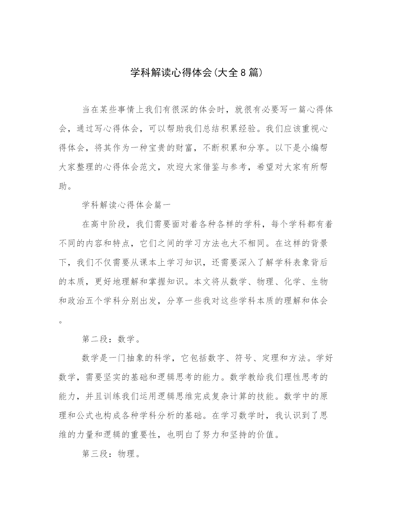 学科解读心得体会(大全8篇)当在某些事情上我们有很深的体会时,就很有必要写一篇心得体会,通过写心得体会,可以帮助我们总结积累经验。我们应该重视心得体会,将其作为一种宝贵的财富,不断积累和分享。以下是小编帮大家整理的心得体会范文,欢迎大家借鉴与参考,希望对大家有所帮助。学科解读心得体会篇一在高中阶段,我们需要面对着各种各样的学科,每个学科都有着不同的内容和特点,它们之间的学习方法也大不相同。在这样的背景下,我们不仅需要从课本上学习知识,还需要深入了解学科表象背后的本质,更好地理解和掌握知识。本文将从数学、物