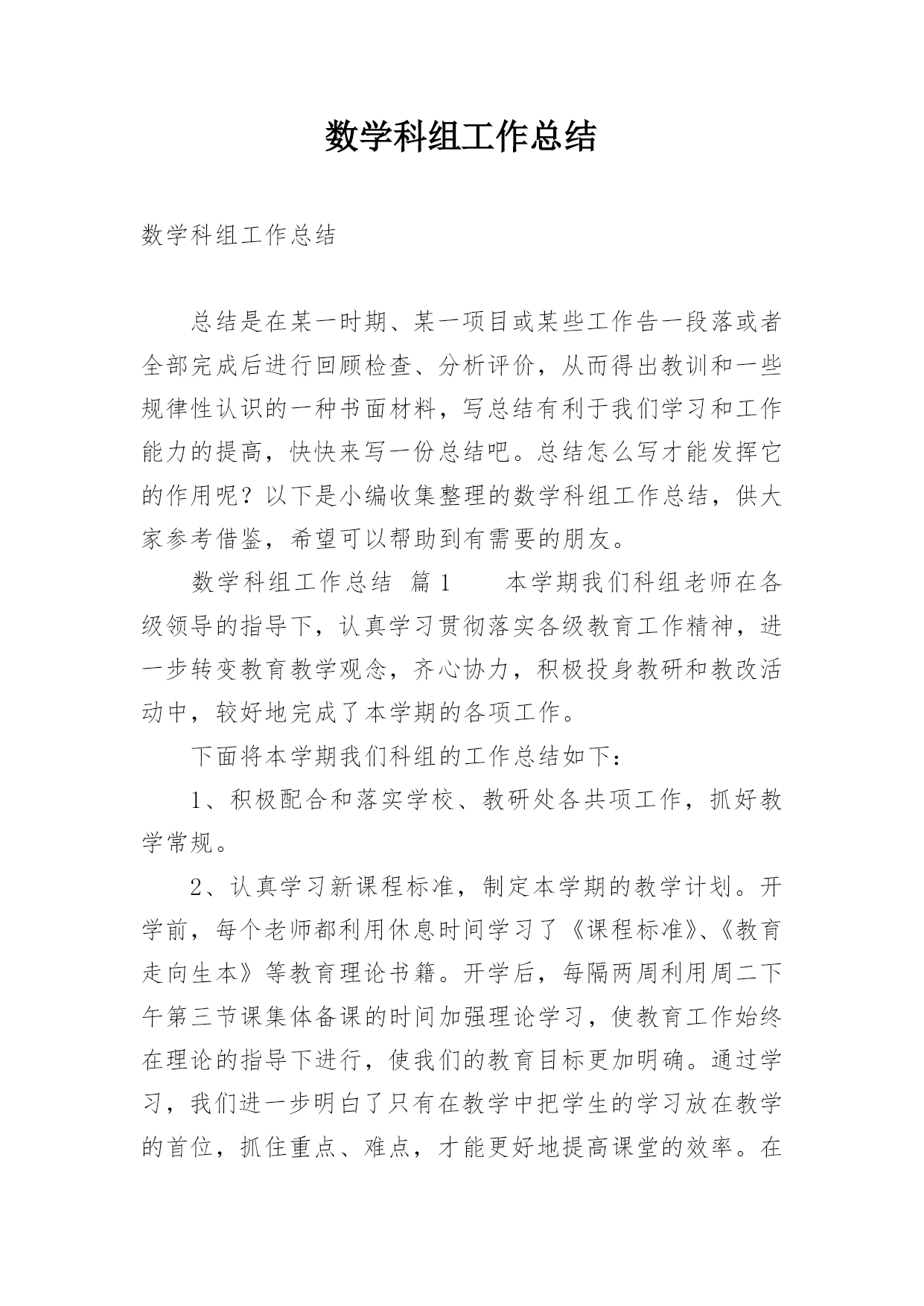 数学科组工作总结数学科组工作总结总结是在某一时期、某一项目或某些工作告一段落或者全部完成后进行回顾检查、分析评价,从而得出教训和一些规律性认识的一种书面材料,写总结有利于我们学习和工作能力的提高,快快来写一份总结吧。总结怎么写才能发挥它的作用呢?以下是小编收集整理的数学科组工作总结,供大家参考借鉴,希望可以帮助到有需要的朋友。数学科组工作总结篇1本学期我们科组老师在各级领导的指导下,认真学习贯彻落实各级教育工作精神,进一步转变教育教学观念,齐心协力,积极投身教研和教改活动中,较好地完成了本学期的各项工作。