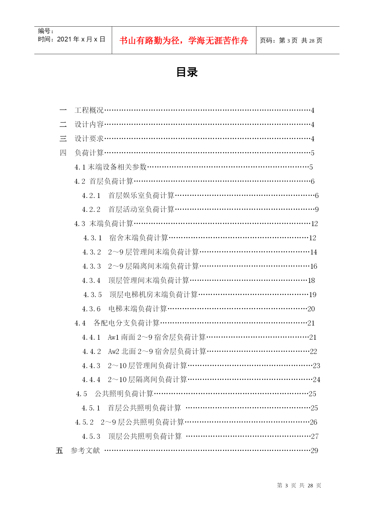 编号:时间:2021年x月x日书山有路勤为径,学海无涯苦作舟页码:第PAGE30页共NUMPAGES28页第PAGE\*MERGEFORMAT30页共NUMPAGES\*MERGEFORMAT28页目录一工程概况…………………………………………………………………………4二设计内容…………………………………………………………………………4三设计要求…………………………………………………………………………4四负荷计算…………………………………………………………………………54.1末端设