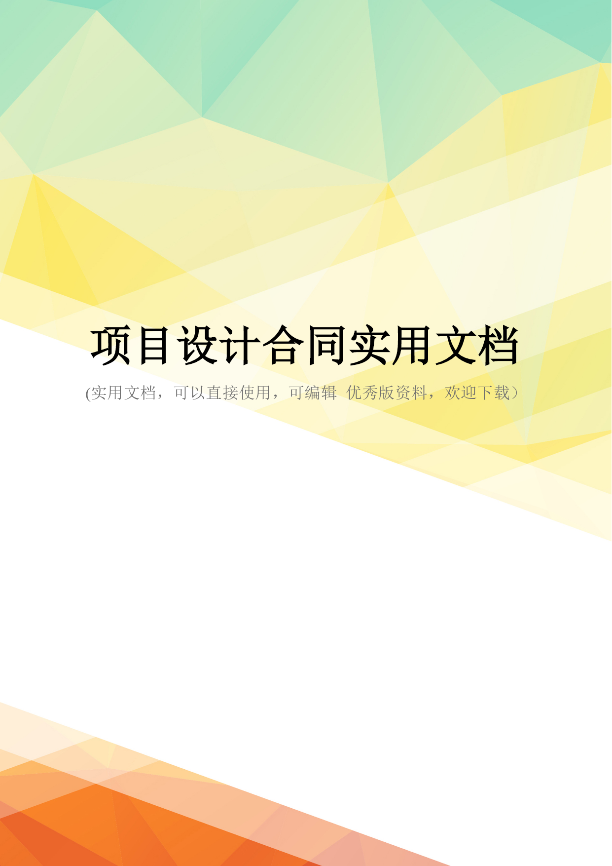 项目设计合同实用文档(实用文档,可以直接使用,可编辑优秀版资料,欢迎下载)建设工程设计合同合同编号:项目名称:发包人:承包人:签订日期:发包人委托承包人承担,经双方协商一致,签订本合同.第一条本合同依据下列文件签订1.1《中华人民共和国合同法》、《中华人民共和国建筑法》等相关法律。1。2国家及地方有关建设工程电力设计管理法规、规章和标准等。1。3建设工程批准文件.第二条本合同设计项目的内容:名称、规模、阶段等见下表。序号分项目名称建设规模设计阶段内容费率(元/㎡)方案初步设计设计概算施工图1//2