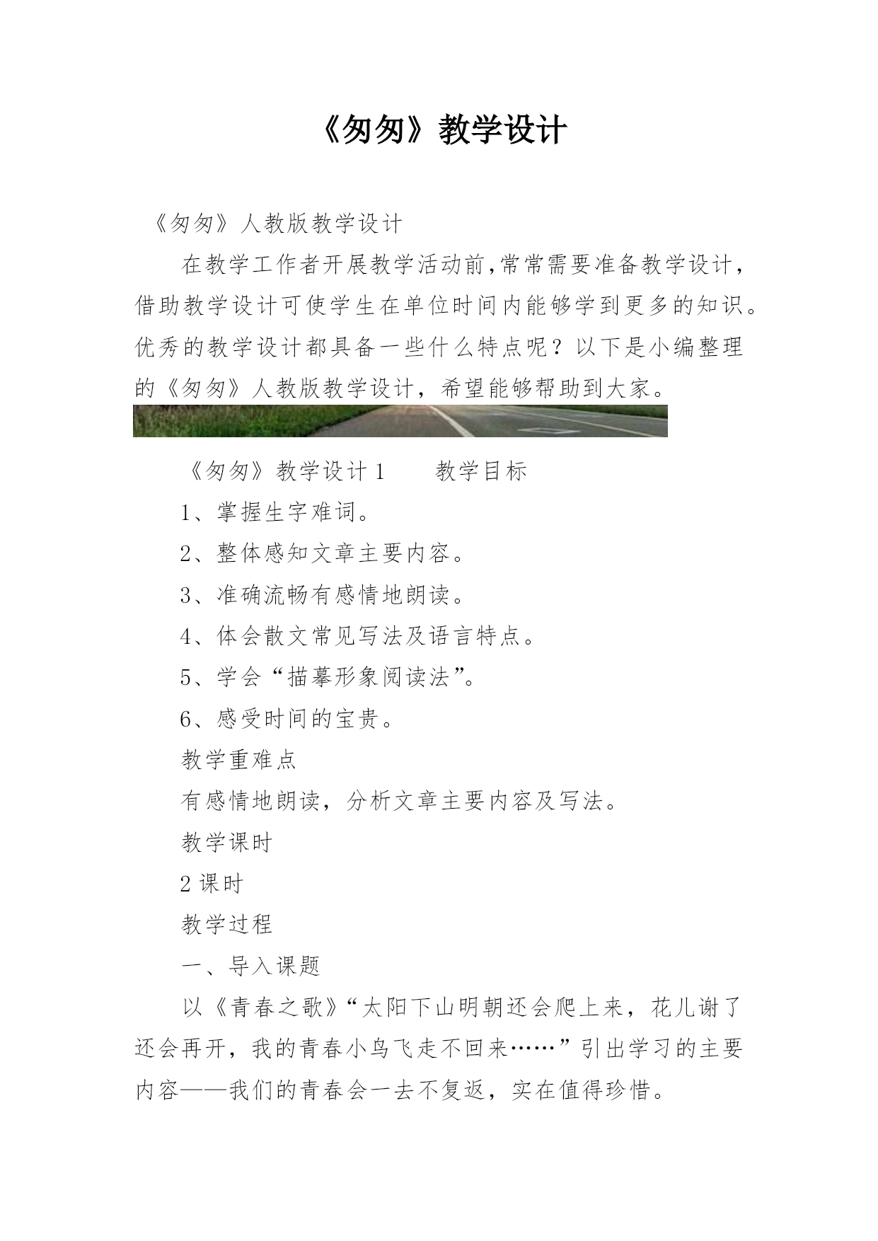 《匆匆》教学设计《匆匆》人教版教学设计在教学工作者开展教学活动前,常常需要准备教学设计,借助教学设计可使学生在单位时间内能够学到更多的知识。优秀的教学设计都具备一些什么特点呢?以下是小编整理的《匆匆》人教版教学设计,希望能够帮助到大家。《匆匆》教学设计1教学目标1、掌握生字难词。2、整体感知文章主要内容。3、准确流畅有感情地朗读。4、体会散文常见写法及语言特点。5、学会“描摹形象阅读法”。6、感受时间的宝贵。教学重难点有感情地朗读,分析文章主要内容及写法。教学课时2课时教学过程一、导入课题以《青春之歌》“