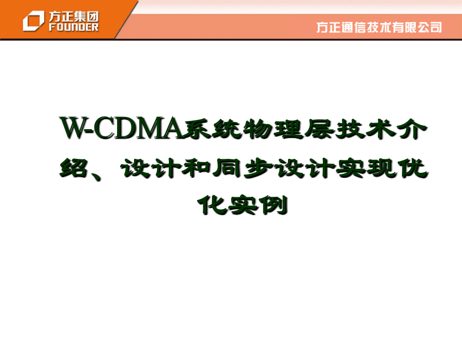 W-CDMA系统物理层技术介绍、设计和同步设计实现优化实例W-CDMA系统设计一、W-CDMA(FDD)物理层协议概述1.W-CDMA协议概观W-CDMA(FDD)物理层协议关系模型2.传输信道与物理信道映射A.传输信道传输信道分类FunctionofDCHTheDedicatedChannel(DCH)isadownlinkoruplinktransportchannel.TheDCHistransmittedovertheentirecelloroveronlyapartofthecellusinge