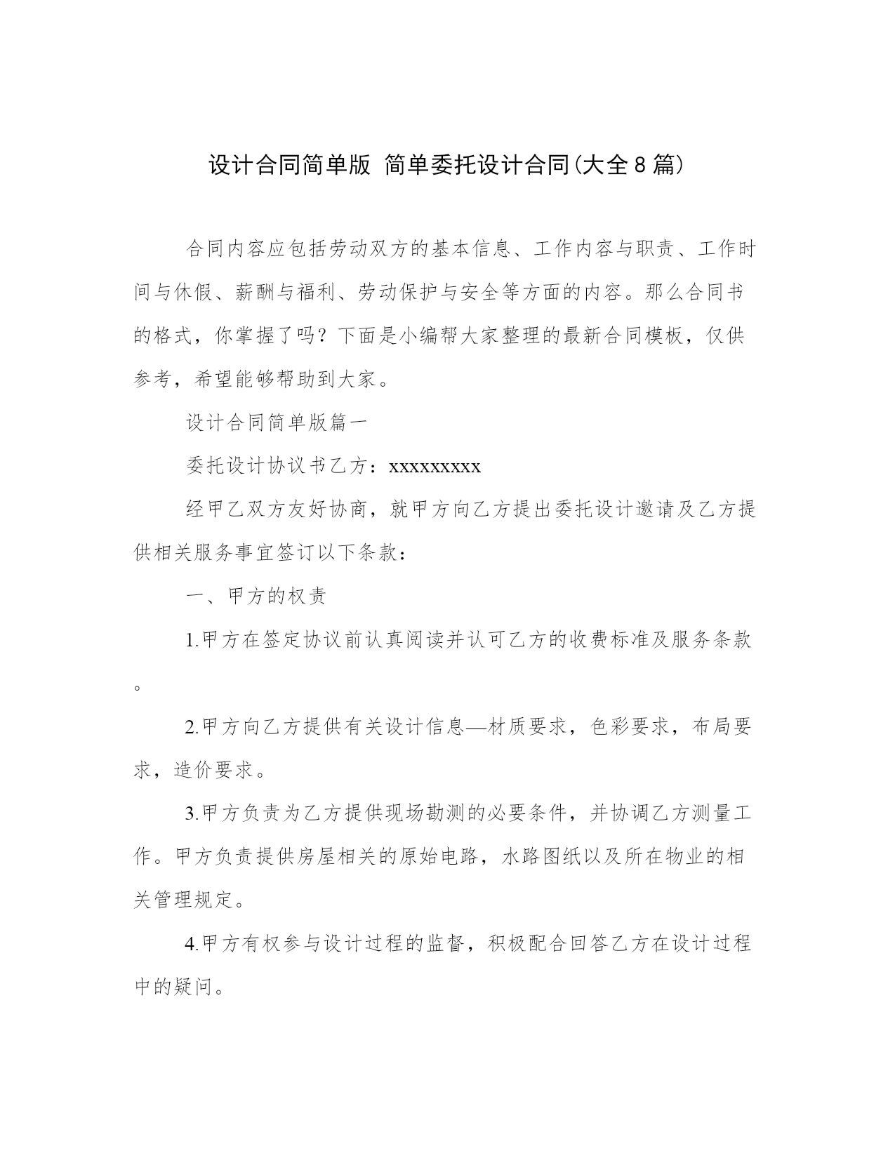 设计合同简单版 简单委托设计合同(大全8篇).docx