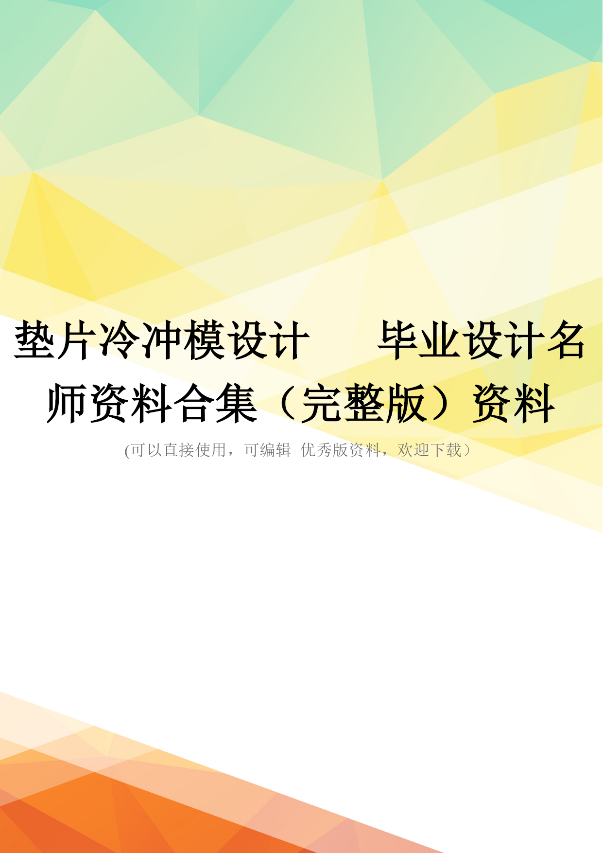 垫片冷冲模设计---毕业设计名师资料合集.doc