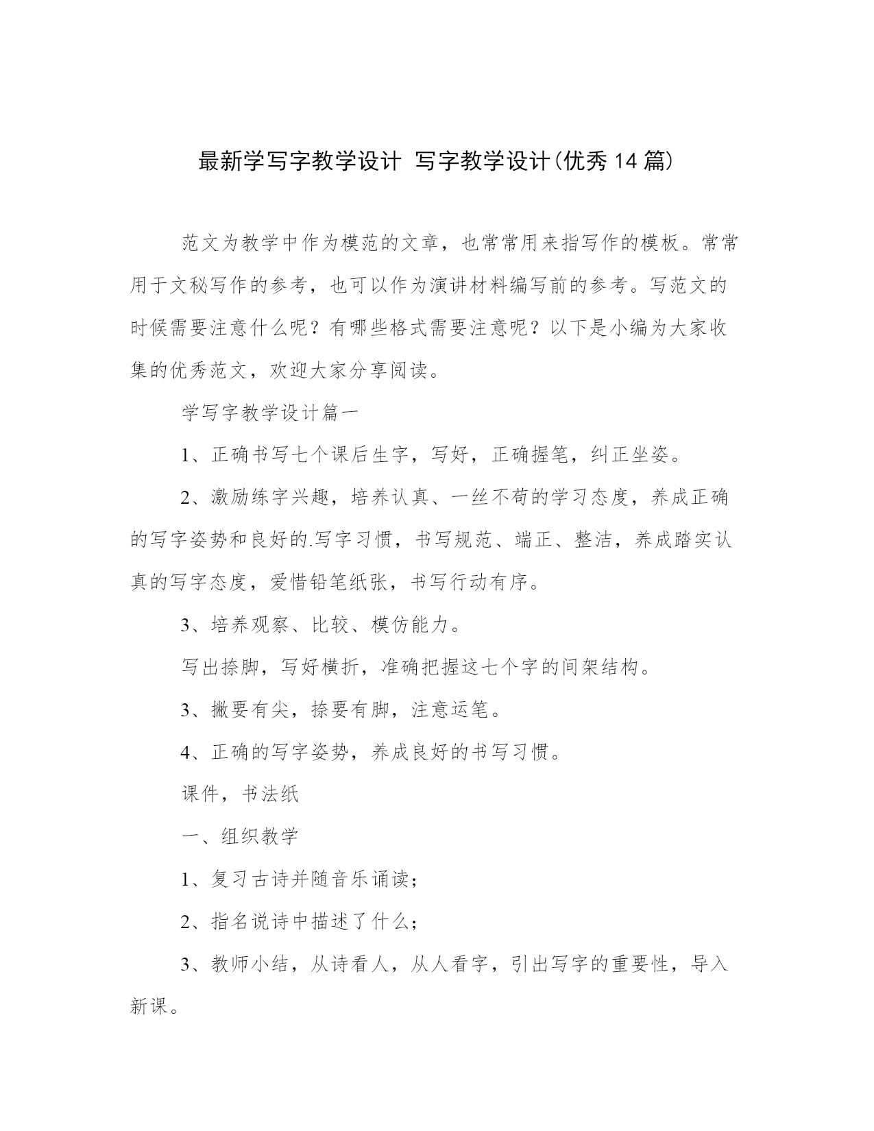最新学写字教学设计 写字教学设计(优秀14篇).docx