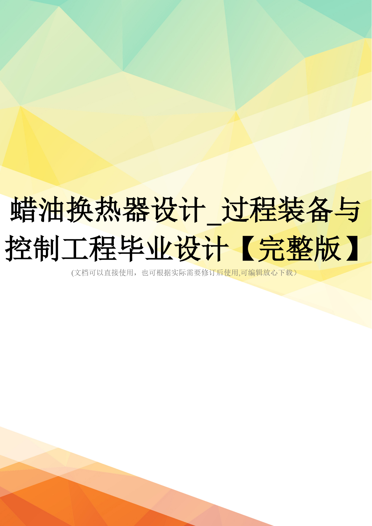 蜡油换热器设计-过程装备与控制工程毕业设计.doc