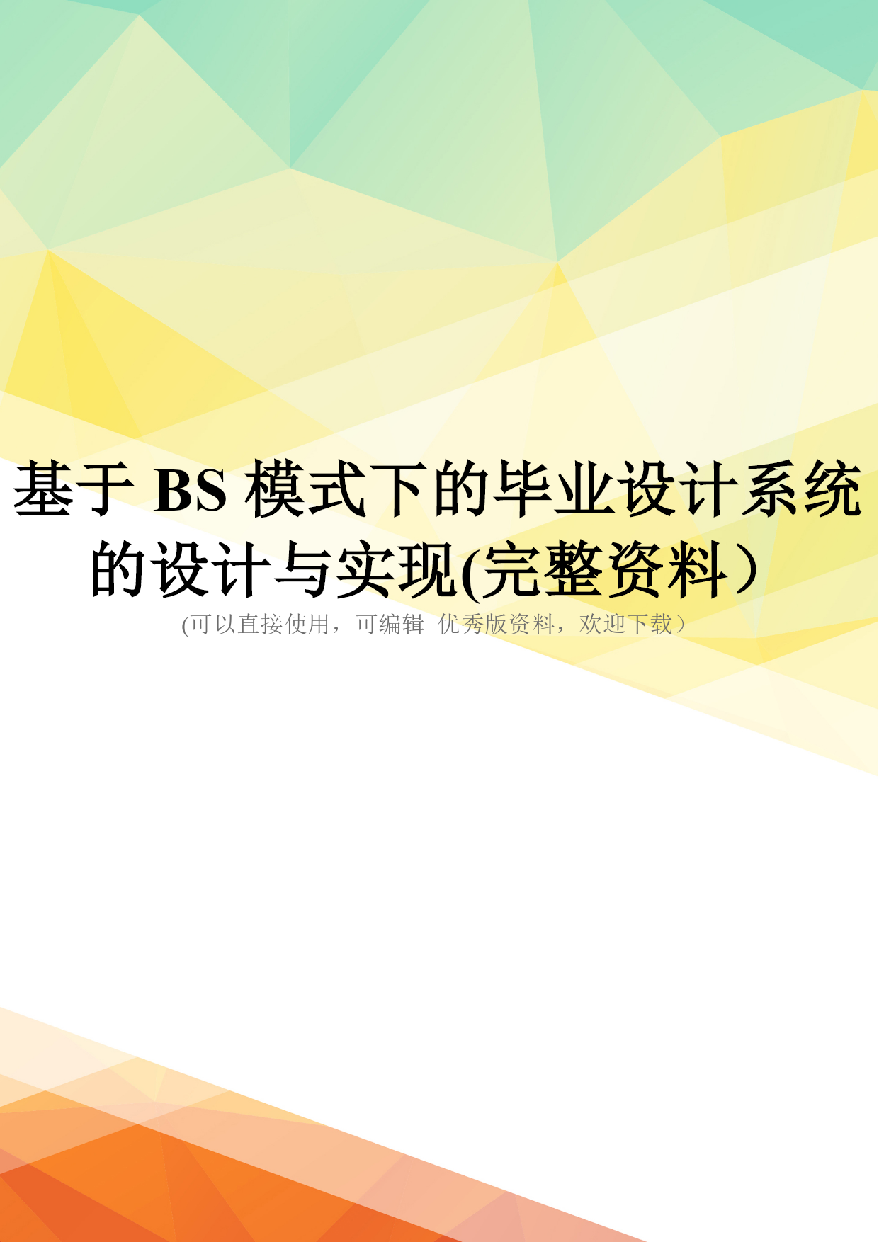 基于BS模式下的毕业设计系统的设计与实现(完整资料).doc