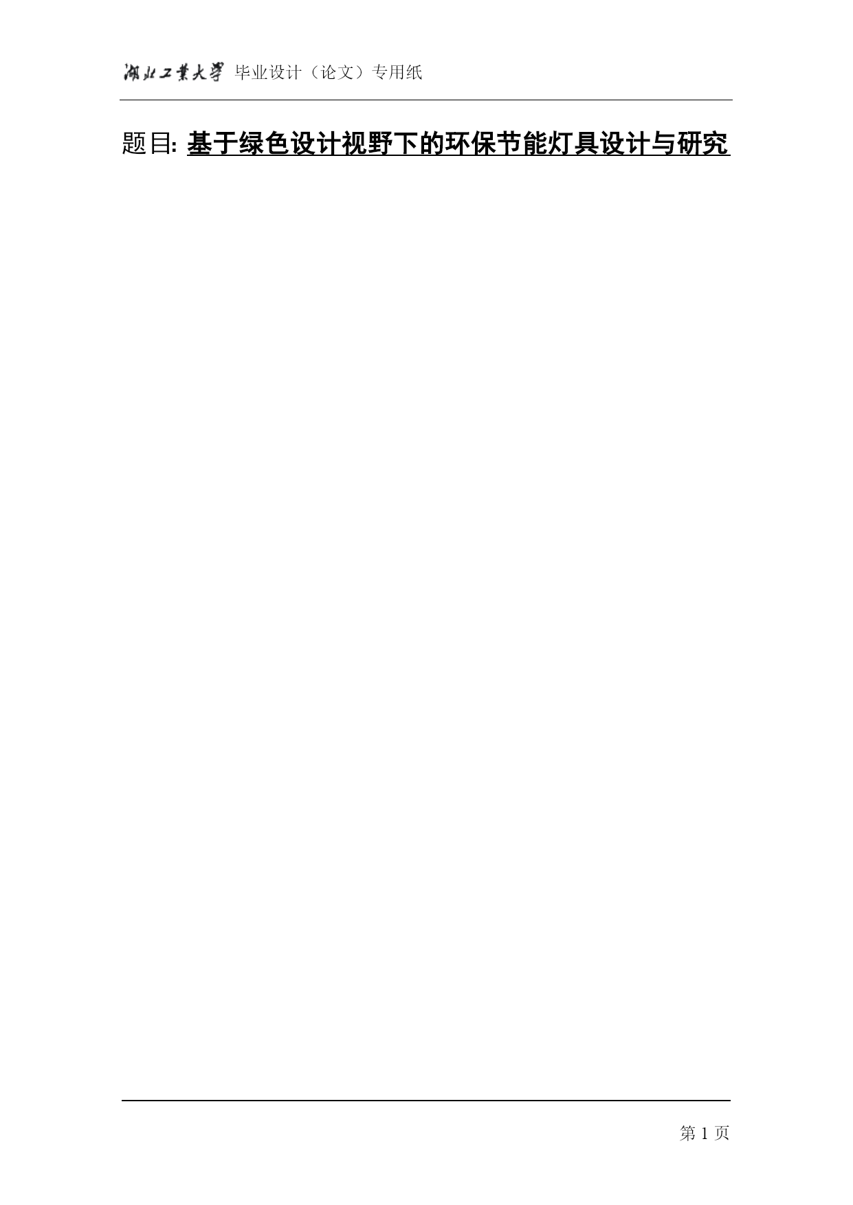 毕业设计(论文)专用纸第PAGE19页题目:基于绿色设计视野下的环保节能灯具设计与研究摘要众所周知当今全球正经历一场变革即环境的变革。人们越来越意识到环境保护的重要性,环保关联着整个世界和人类自身的发展。如今的很多家庭也开始提倡“绿色照明”,人们开始从切身出发响应节能号召。基于“绿色设计视野下的环保节能灯具设计与研究”旨在通过科学的照明手段,采用效率高、寿命长、安全和性能稳定的照明电器产品,改善提高人们工作、学习、生活的条件和质量。相信在若干年后“绿色工业”也会一直造福着全人类。关键词:绿色环保节能