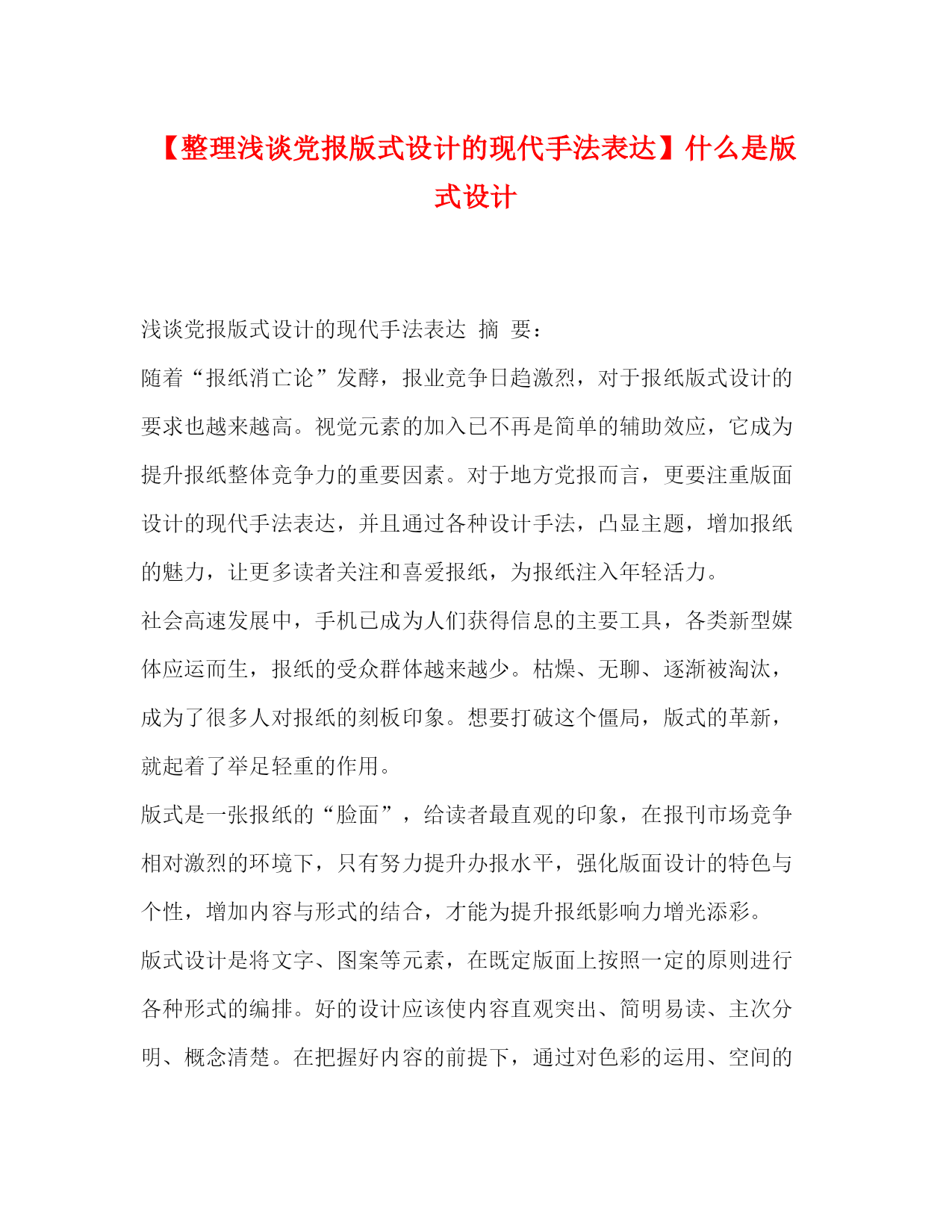 2022【整理浅谈党报版式设计的现代手法表达】什么是版式设计.docx