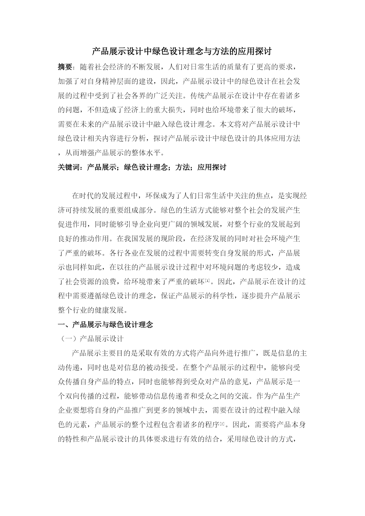 【精编】产品展示设计中绿色设计理念与方法的应用探讨.doc