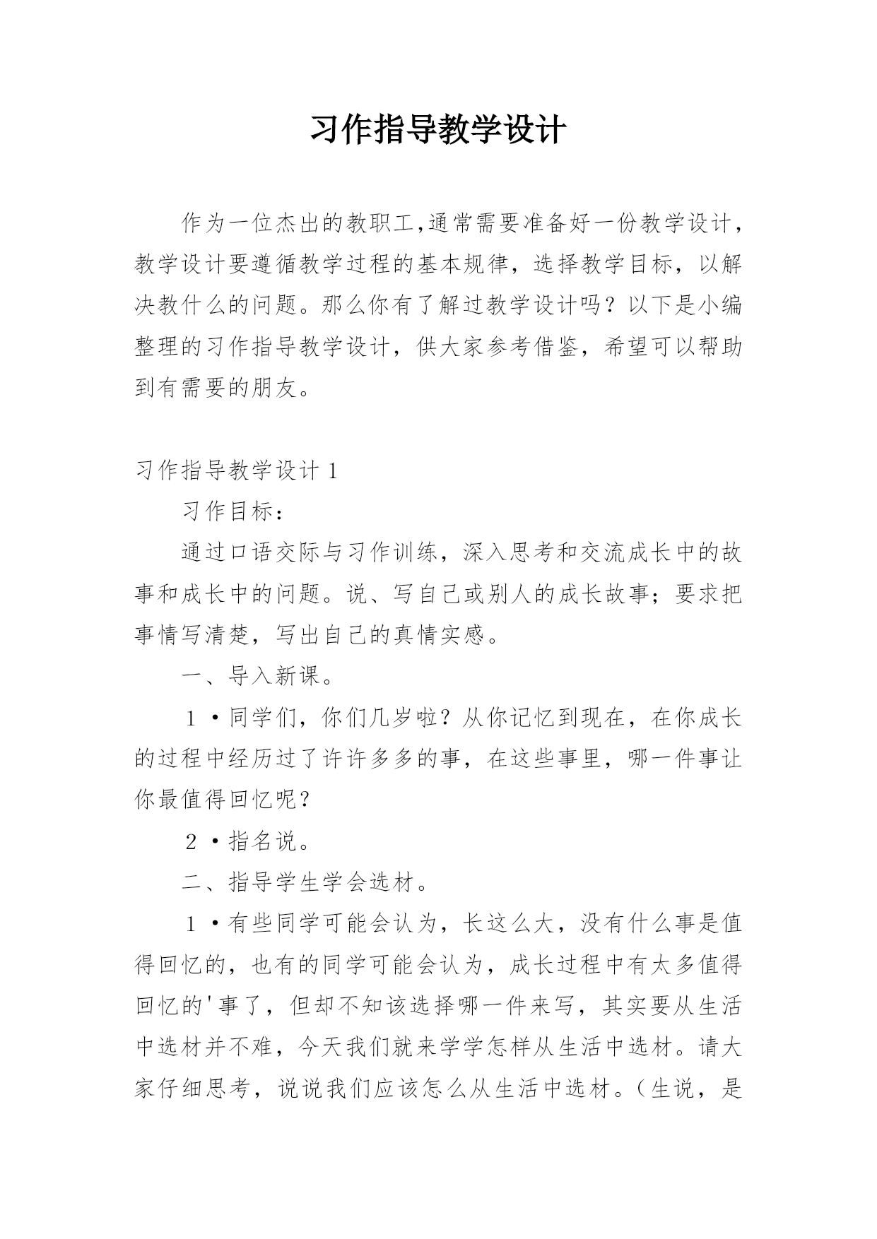 习作指导教学设计作为一位杰出的教职工,通常需要准备好一份教学设计,教学设计要遵循教学过程的基本规律,选择教学目标,以解决教什么的问题。那么你有了解过教学设计吗?以下是小编整理的习作指导教学设计,供大家参考借鉴,希望可以帮助到有需要的朋友。习作指导教学设计1习作目标:通过口语交际与习作训练,深入思考和交流成长中的故事和成长中的问题。说、写自己或别人的成长故事;要求把事情写清楚,写出自己的真情实感。一、导入新课。1·同学们,你们几岁啦?从你记忆到现在,在你成长的过程中经历过了许许多多的事,在这些事里,哪一件事