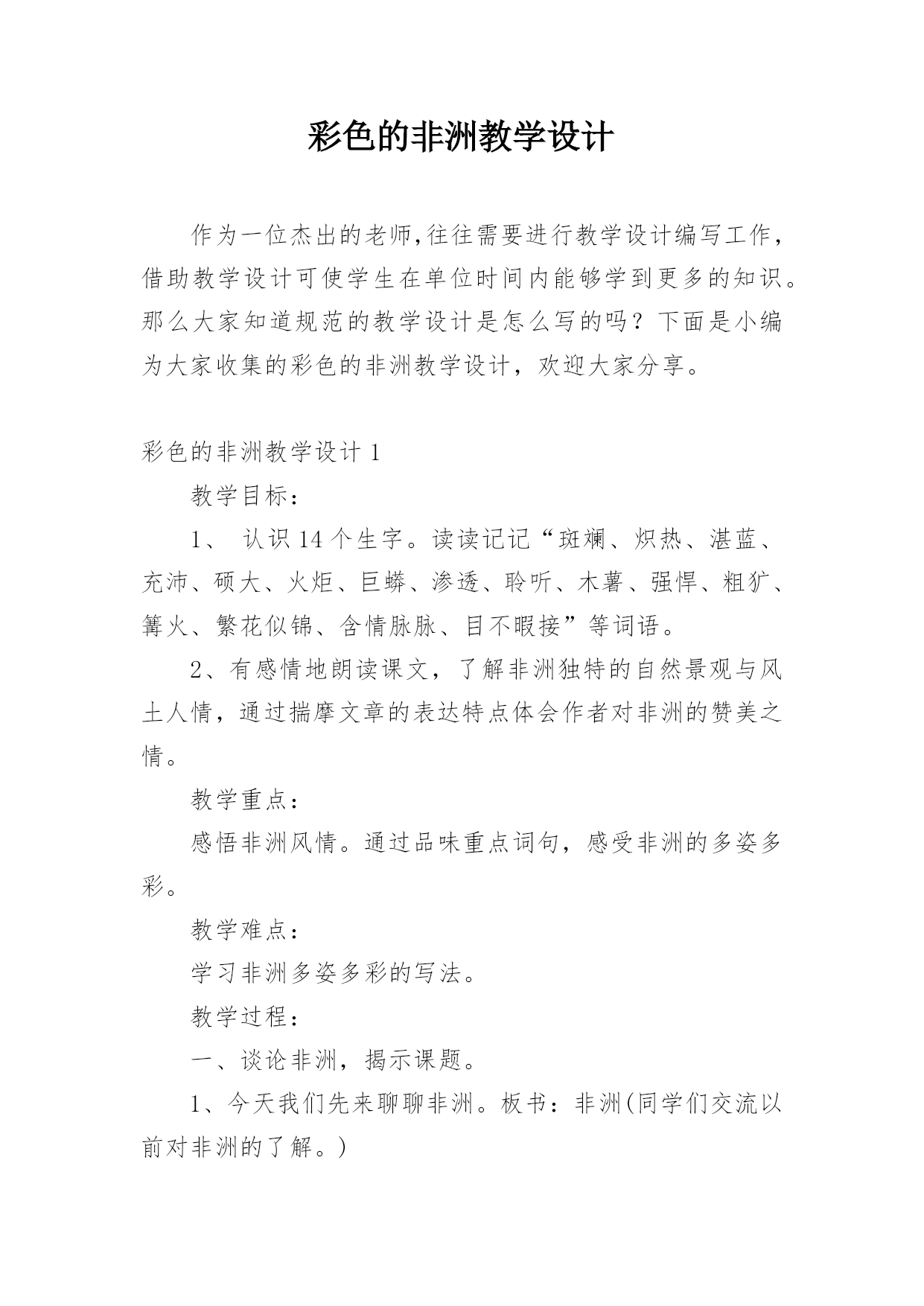 彩色的非洲教学设计.docx