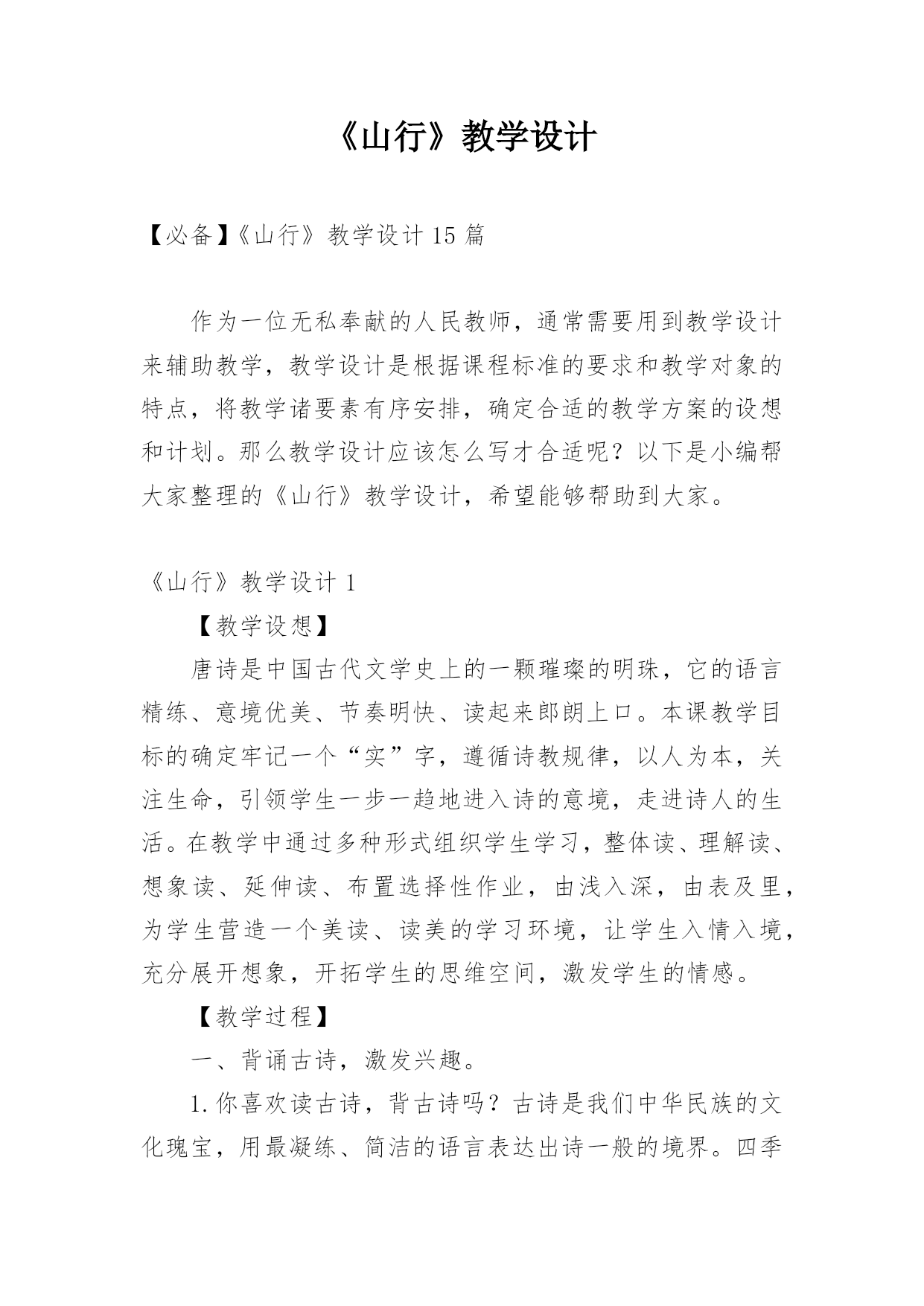 《山行》教学设计【必备】《山行》教学设计15篇作为一位无私奉献的人民教师,通常需要用到教学设计来辅助教学,教学设计是根据课程标准的要求和教学对象的特点,将教学诸要素有序安排,确定合适的教学方案的设想和计划。那么教学设计应该怎么写才合适呢?以下是小编帮大家整理的《山行》教学设计,希望能够帮助到大家。《山行》教学设计1【教学设想】唐诗是中国古代文学史上的一颗璀璨的明珠,它的语言精练、意境优美、节奏明快、读起来郎朗上口。本课教学目标的确定牢记一个“实”字,遵循诗教规律,以人为本,关注生命,引领学生一步一趋地进入