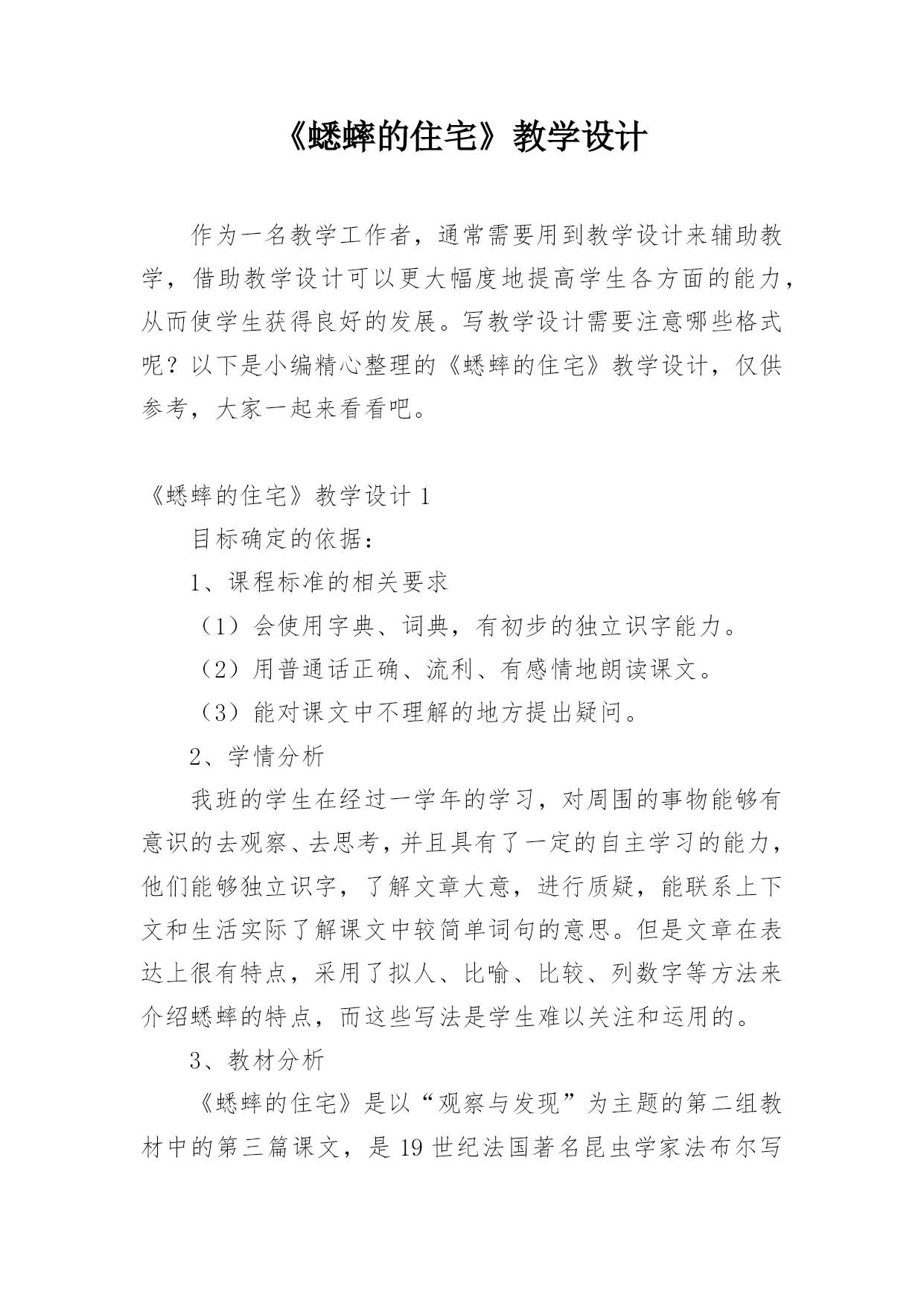 《蟋蟀的住宅》教学设计作为一名教学工作者,通常需要用到教学设计来辅助教学,借助教学设计可以更大幅度地提高学生各方面的能力,从而使学生获得良好的发展。写教学设计需要注意哪些格式呢?以下是小编精心整理的《蟋蟀的住宅》教学设计,仅供参考,大家一起来看看吧。《蟋蟀的住宅》教学设计1目标确定的依据:1、课程标准的相关要求(1)会使用字典、词典,有初步的独立识字能力。(2)用普通话正确、流利、有感情地朗读课文。(3)能对课文中不理解的地方提出疑问。2、学情分析我班的学生在经过一学年的学习,对周围的事物能够有意识的去观