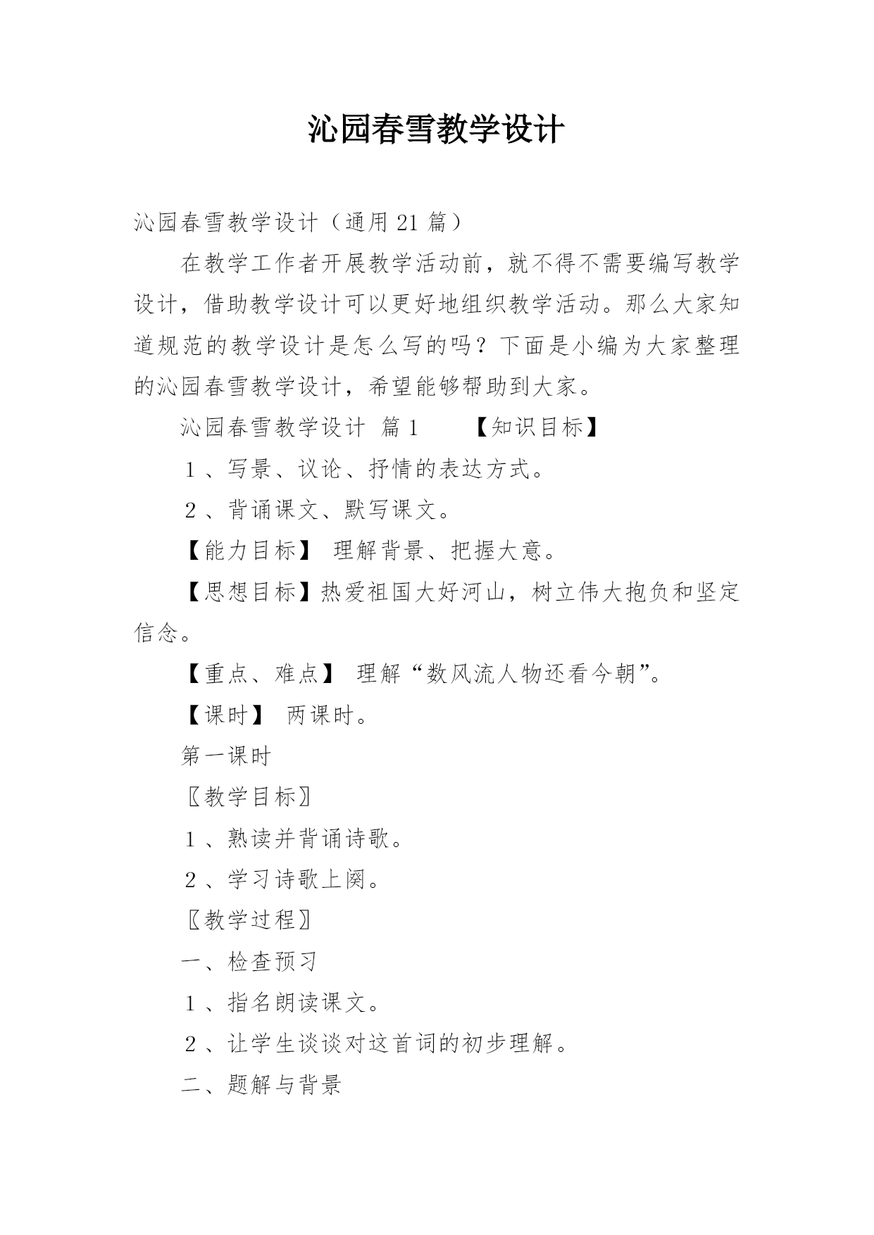 沁园春雪教学设计沁园春雪教学设计(通用21篇)在教学工作者开展教学活动前,就不得不需要编写教学设计,借助教学设计可以更好地组织教学活动。那么大家知道规范的教学设计是怎么写的吗?下面是小编为大家整理的沁园春雪教学设计,希望能够帮助到大家。沁园春雪教学设计篇1【知识目标】1、写景、议论、抒情的表达方式。2、背诵课文、默写课文。【能力目标】理解背景、把握大意。【思想目标】热爱祖国大好河山,树立伟大抱负和坚定信念。【重点、难点】理解“数风流人物还看今朝”。【课时】两课时。第一课时〖教学目标〗1、熟读并背诵诗歌。2
