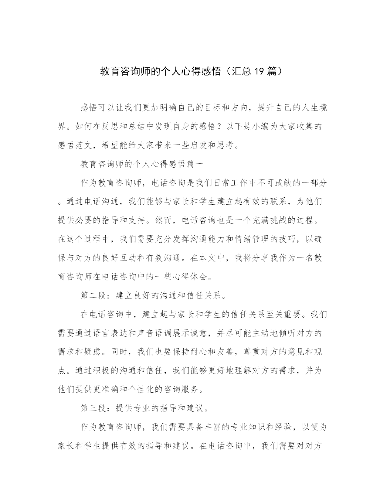 教育咨询师的个人心得感悟(汇总19篇).docx