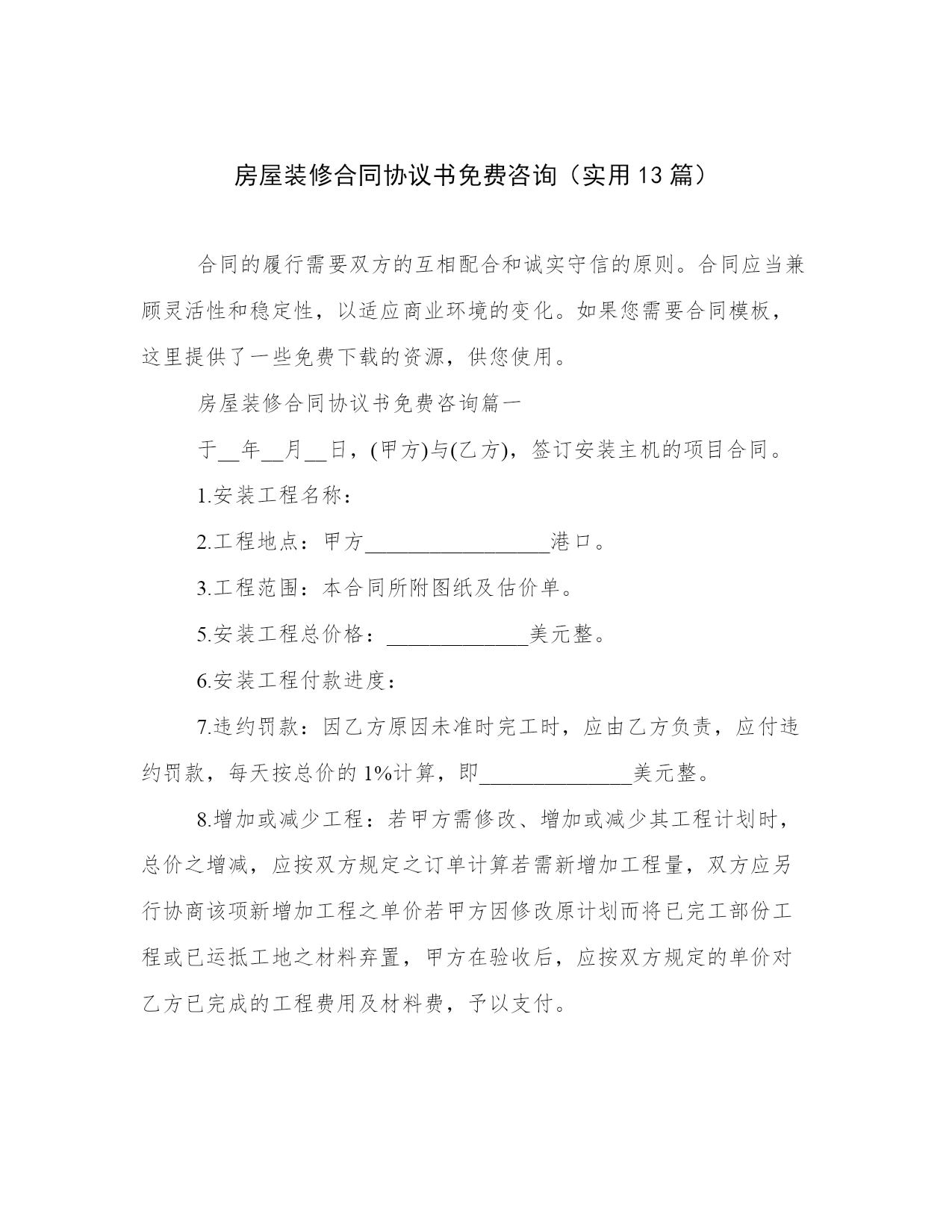 房屋装修合同协议书免费咨询(实用13篇).docx