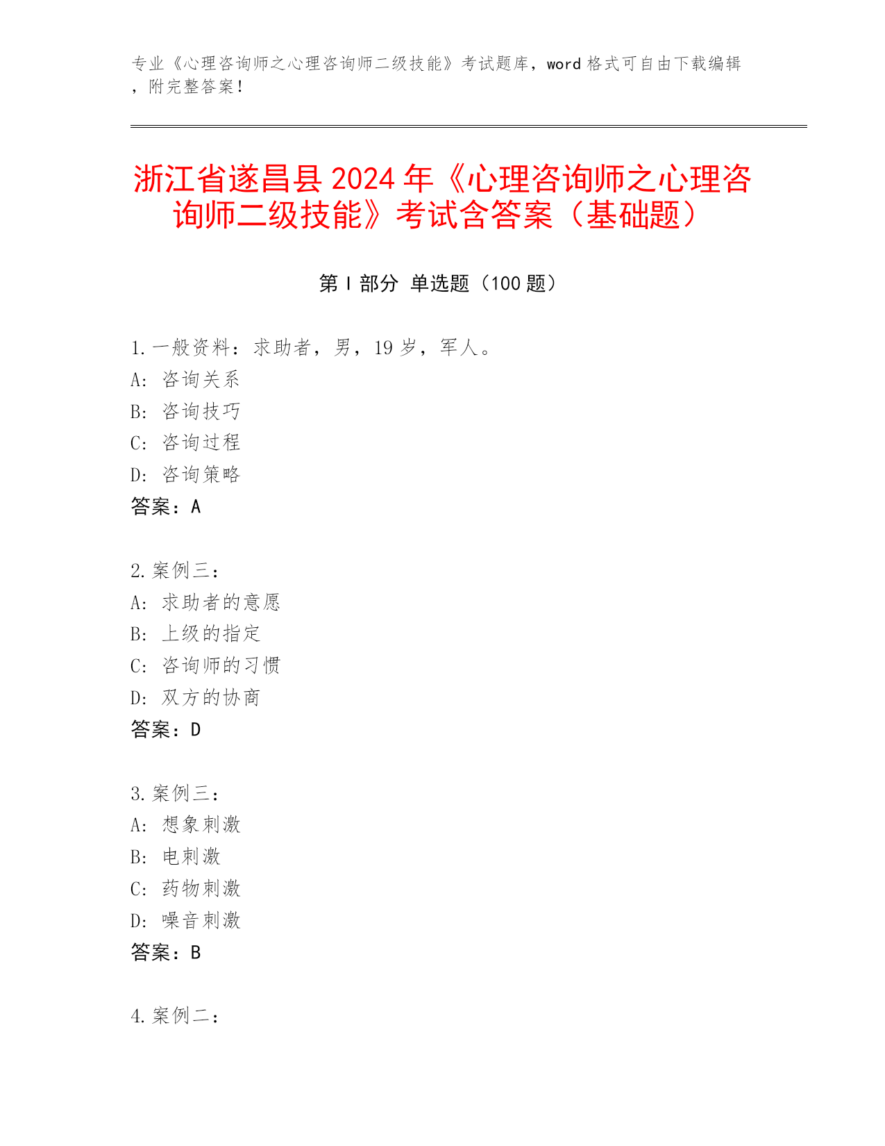 浙江省遂昌县2024年《心理咨询师之心理咨询师二级技能》考试含答案(基础题).docx