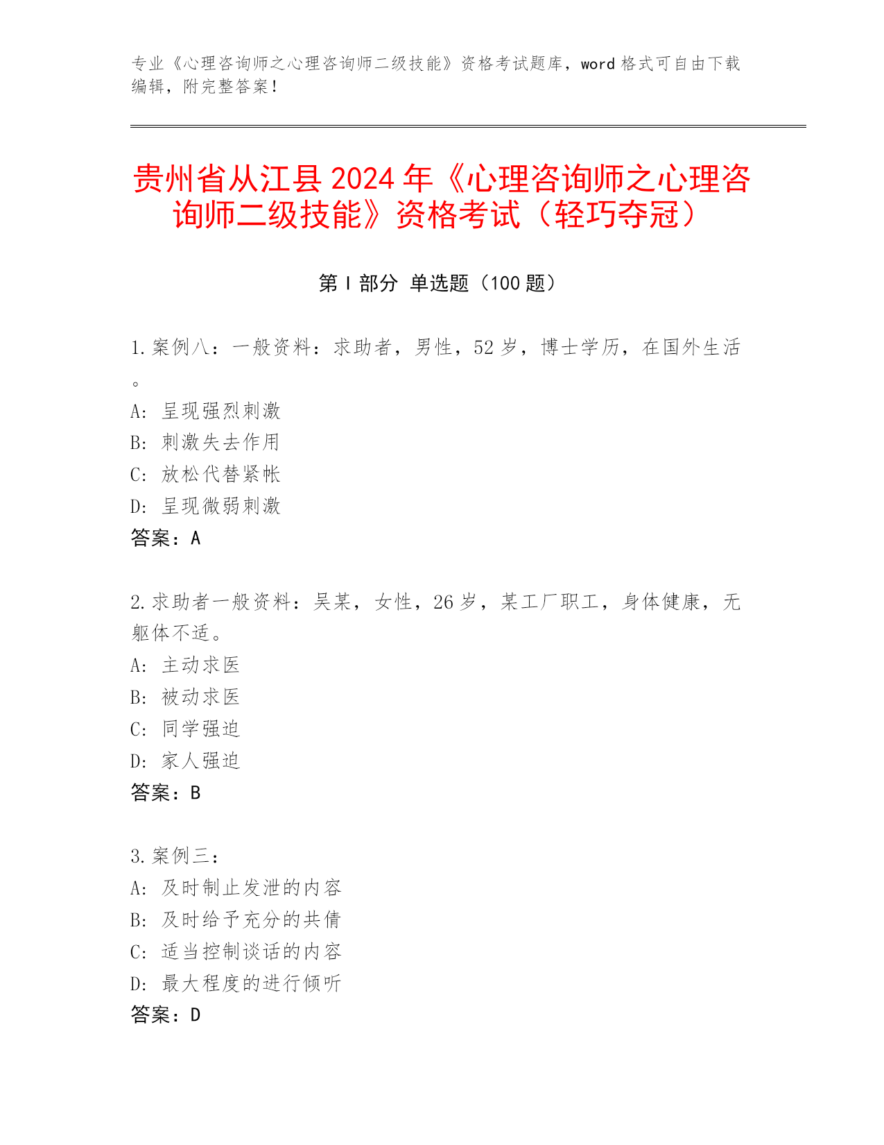 贵州省从江县2024年《心理咨询师之心理咨询师二级技能》资格考试(轻巧夺冠).docx