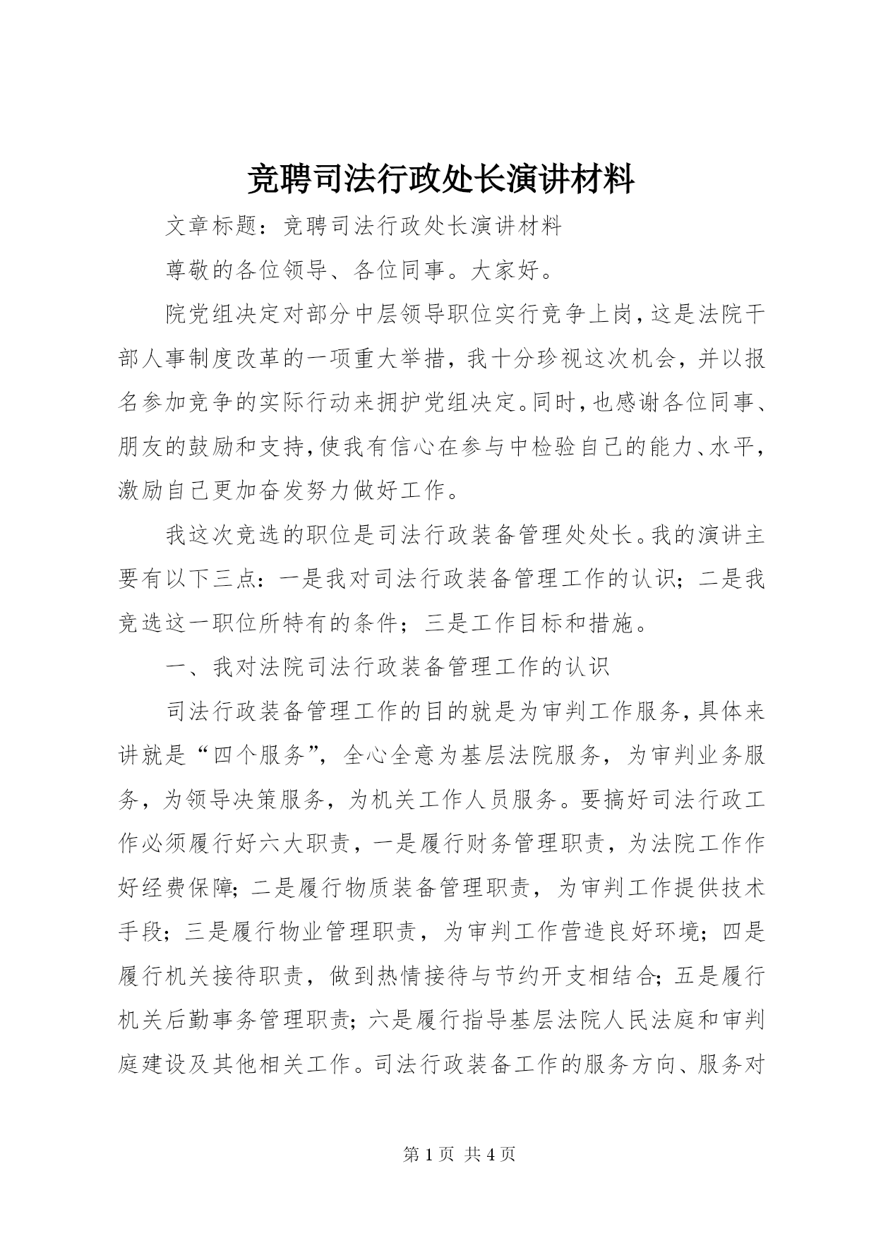 第PAGE\*Arabic\*MERGEFORMAT4页共NUMPAGES\*MERGEFORMAT4页竞聘司法行政处长演讲材料文章标题:竞聘司法行政处长演讲材料尊敬的各位领导、各位同事。大家好。院党组决定对部分中层领导职位实行竞争上岗,这是法院干部人事制度改革的一项重大举措,我十分珍视这次机会,并以报名参加竞争的实际行动来拥护党组决定。同时,也感谢各位同事、朋友的鼓励和支持,使我有信心在参与中检验自己的能力、水平,激励自己更加奋发努力做好工作。我这次竞选的职位是司法行政装备管理处处长。我的演
