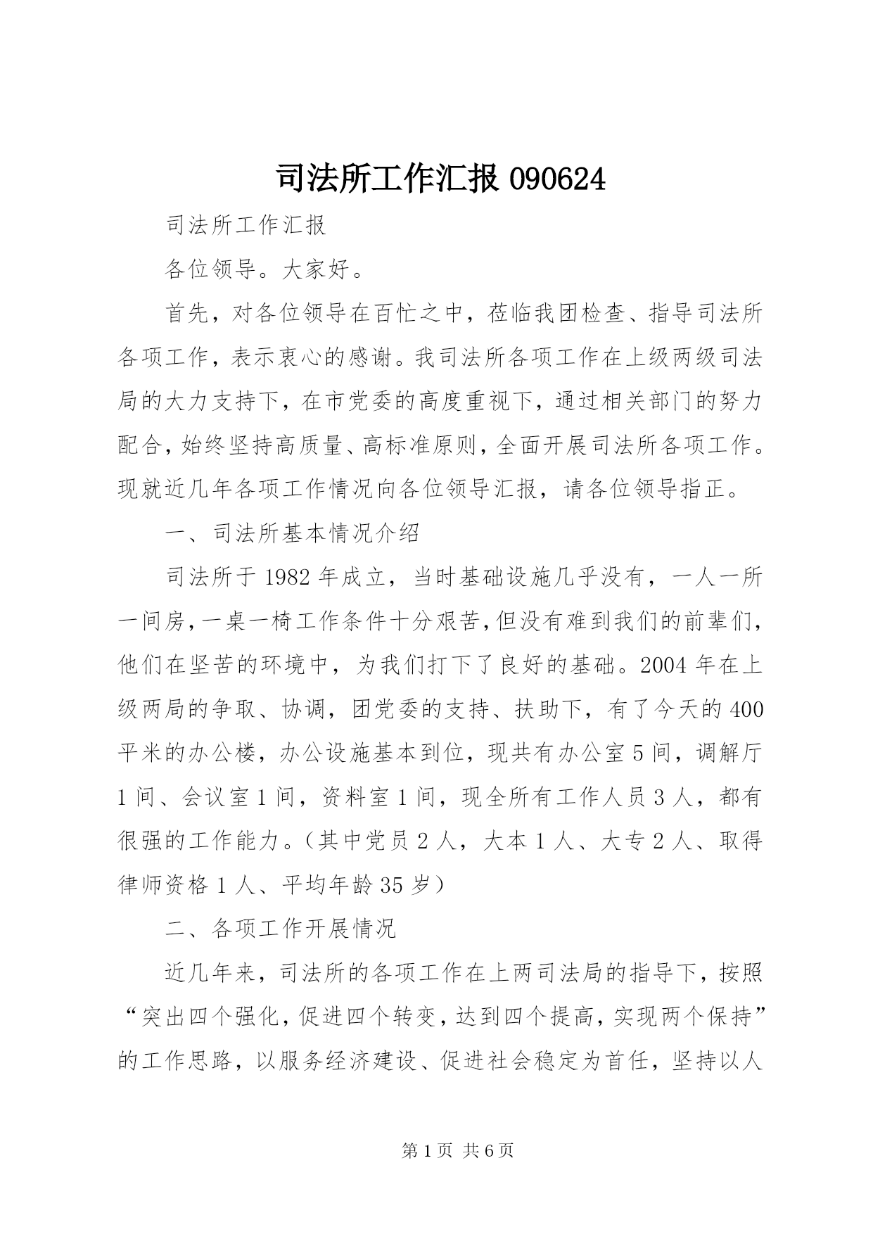 第PAGE\*Arabic\*MERGEFORMAT6页共NUMPAGES\*MERGEFORMAT6页司法所工作汇报090624司法所工作汇报各位领导。大家好。首先,对各位领导在百忙之中,莅临我团检查、指导司法所各项工作,表示衷心的感谢。我司法所各项工作在上级两级司法局的大力支持下,在市党委的高度重视下,通过相关部门的努力配合,始终坚持高质量、高标准原则,全面开展司法所各项工作。现就近几年各项工作情况向各位领导汇报,请各位领导指正。一、司法所基本情况介绍司法所于1982年成立,当时基础设施几