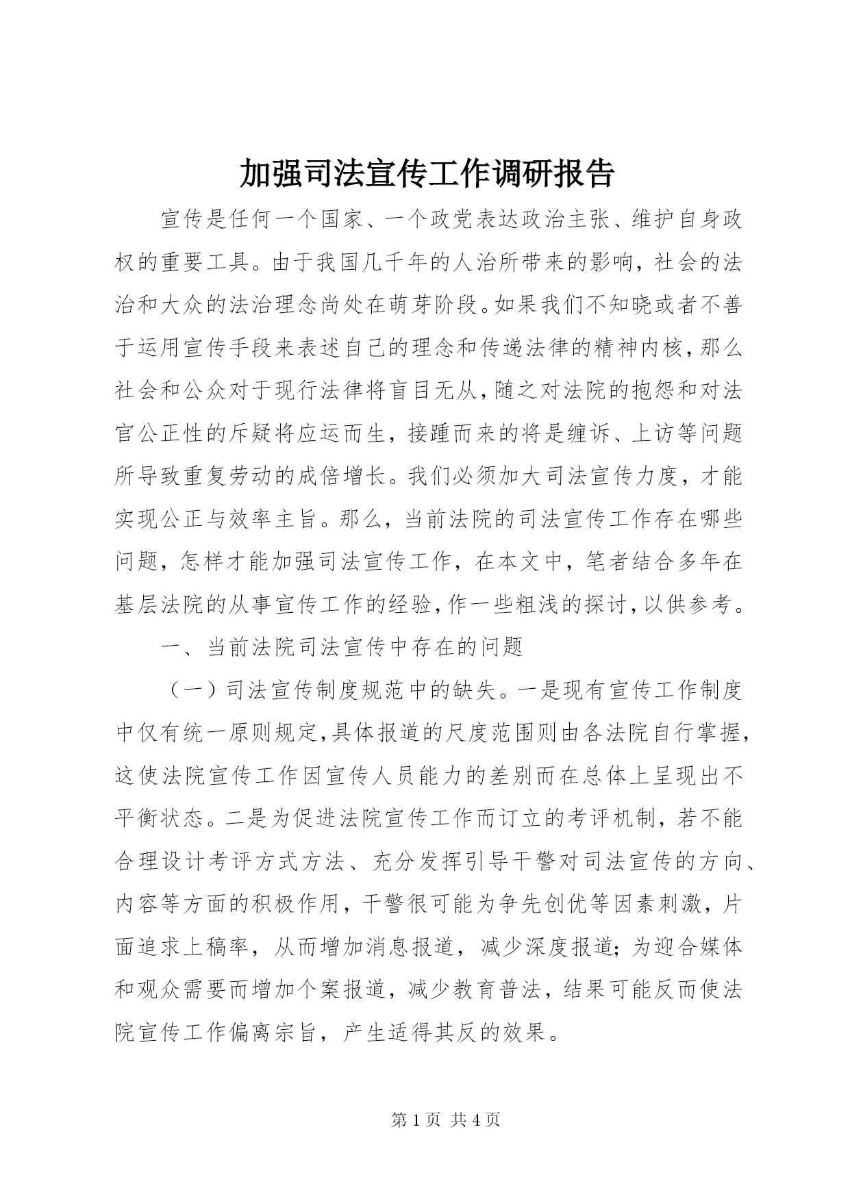 第PAGE\*Arabic\*MERGEFORMAT4页共NUMPAGES\*MERGEFORMAT4页加强司法宣传工作调研报告宣传是任何一个国家、一个政党表达政治主张、维护自身政权的重要工具。由于我国几千年的人治所带来的影响,社会的法治和大众的法治理念尚处在萌芽阶段。如果我们不知晓或者不善于运用宣传手段来表述自己的理念和传递法律的精神内核,那么社会和公众对于现行法律将盲目无从,随之对法院的抱怨和对法官公正性的斥疑将应运而生,接踵而来的将是缠诉、上访等问题所导致重复劳动的成倍增长。我们必须加大