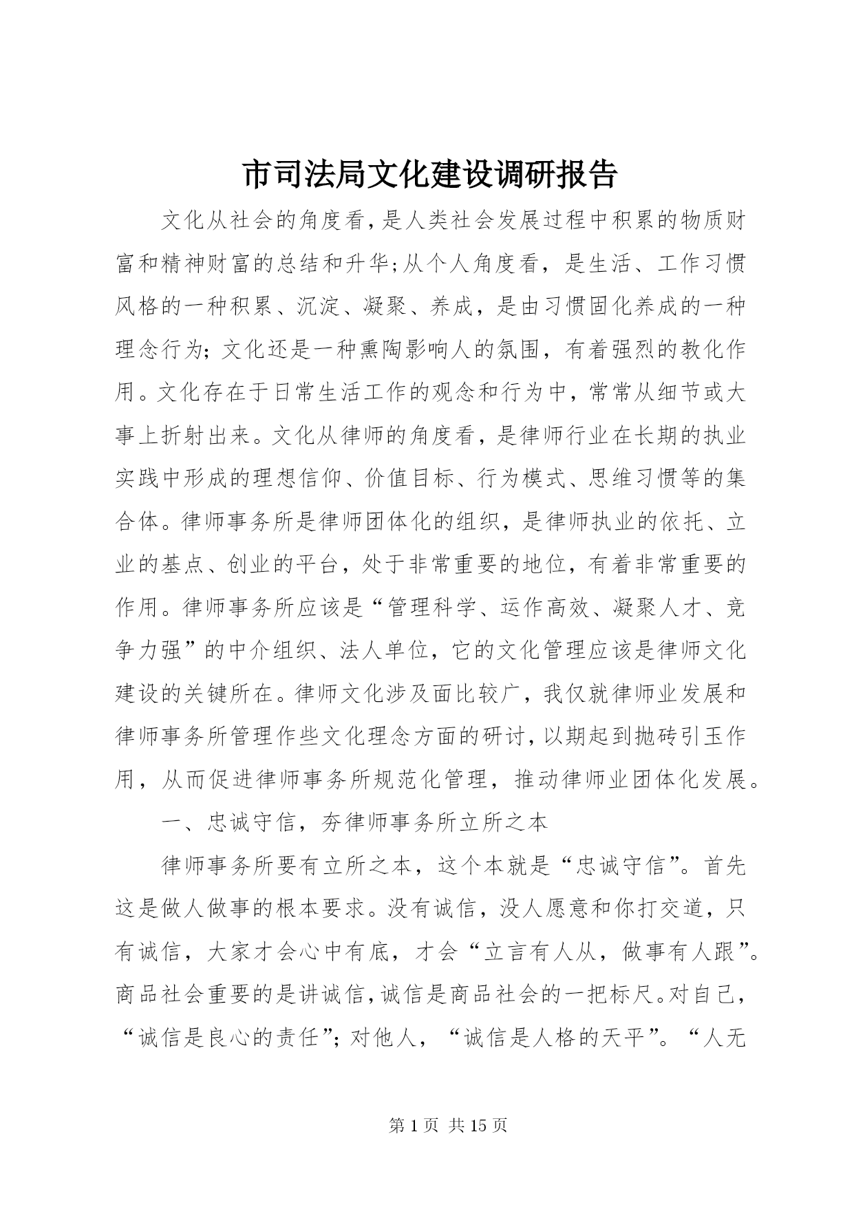 第PAGE\*Arabic\*MERGEFORMAT15页共NUMPAGES\*MERGEFORMAT15页市司法局文化建设调研报告文化从社会的角度看,是人类社会发展过程中积累的物质财富和精神财富的总结和升华;从个人角度看,是生活、工作习惯风格的一种积累、沉淀、凝聚、养成,是由习惯固化养成的一种理念行为;文化还是一种熏陶影响人的氛围,有着强烈的教化作用。文化存在于日常生活工作的观念和行为中,常常从细节或大事上折射出来。文化从律师的角度看,是律师行业在长期的执业实践中形成的理想信仰、价值目标、行