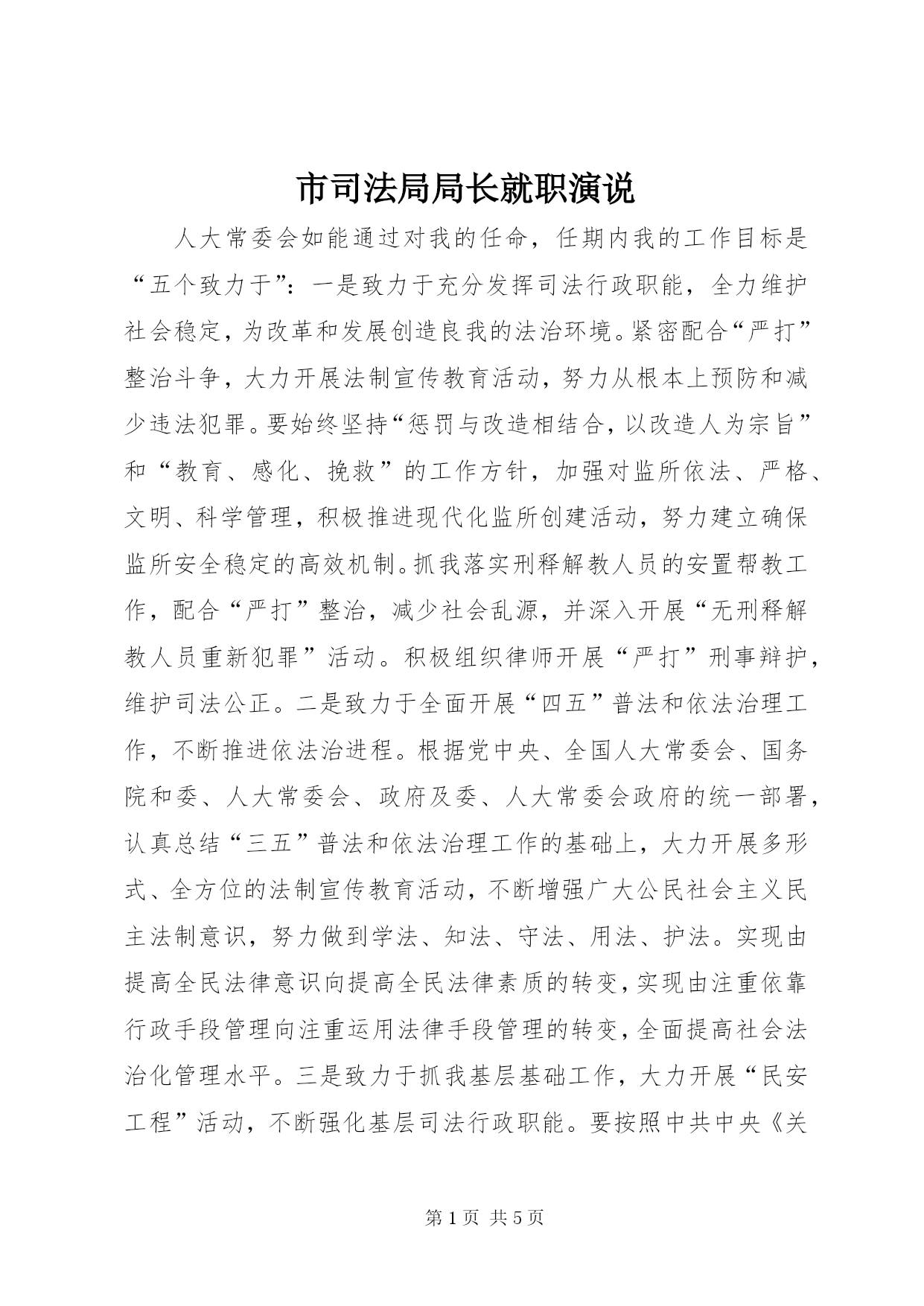 第PAGE\*Arabic\*MERGEFORMAT5页共NUMPAGES\*MERGEFORMAT5页市司法局局长就职演说人大常委会如能通过对我的任命,任期内我的工作目标是“五个致力于”:一是致力于充分发挥司法行政职能,全力维护社会稳定,为改革和发展创造良我的法治环境。紧密配合“严打”整治斗争,大力开展法制宣传教育活动,努力从根本上预防和减少违法犯罪。要始终坚持“惩罚与改造相结合,以改造人为宗旨”和“教育、感化、挽救”的工作方针,加强对监所依法、严格、文明、科学管理,积极推进现代化监所创建活
