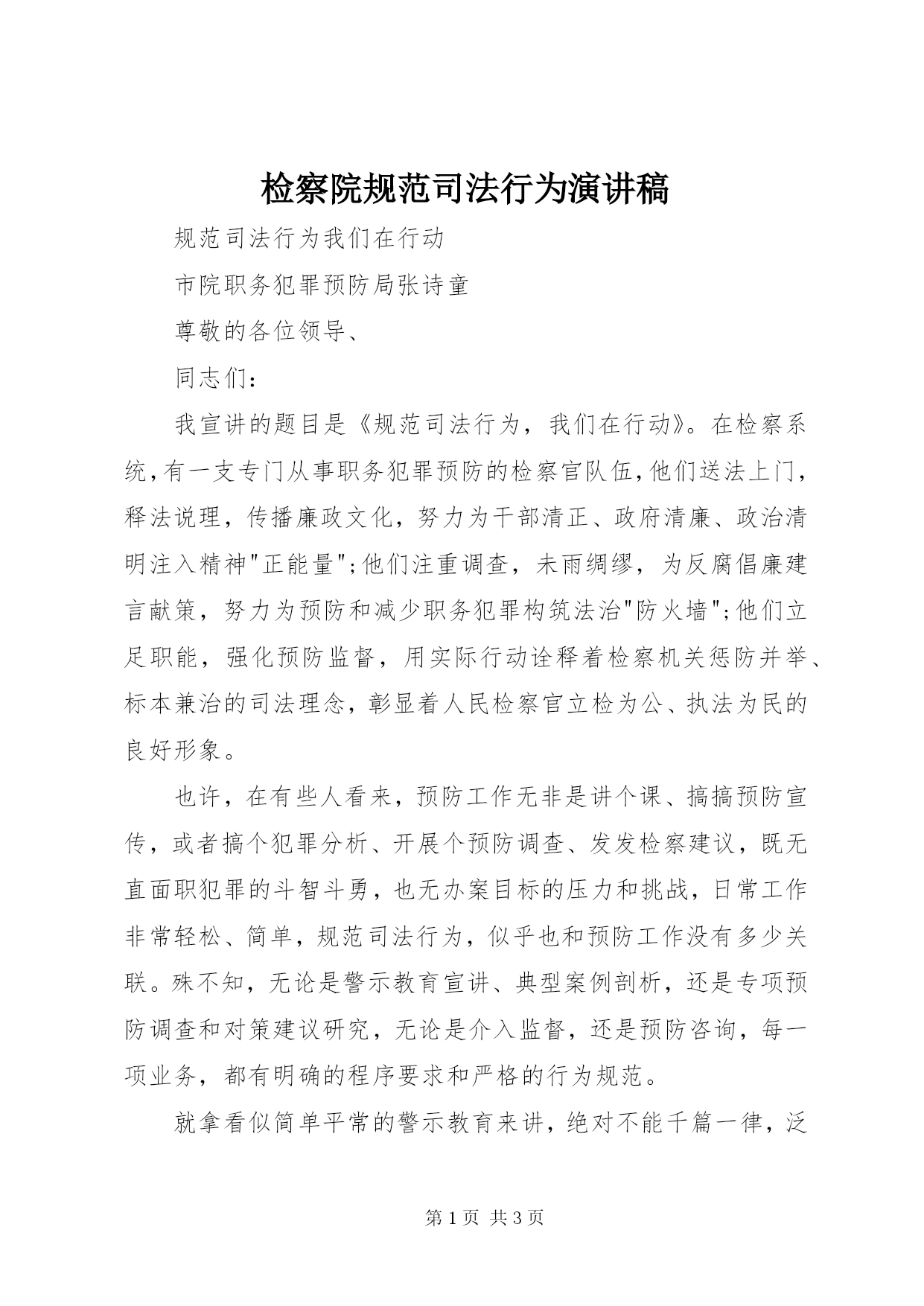 第PAGE\*Arabic\*MERGEFORMAT3页共NUMPAGES\*MERGEFORMAT3页检察院规范司法行为演讲稿规范司法行为我们在行动市院职务犯罪预防局张诗童尊敬的各位领导、同志们:我宣讲的题目是《规范司法行为,我们在行动》。在检察系统,有一支专门从事职务犯罪预防的检察官队伍,他们送法上门,释法说理,传播廉政文化,努力为干部清正、政府清廉、政治清明注入精神"正能量";他们注重调查,未雨绸缪,为反腐倡廉建言献策,努力为预防和减少职务犯罪构筑法治"防火墙";他们立足职能,强化预防监